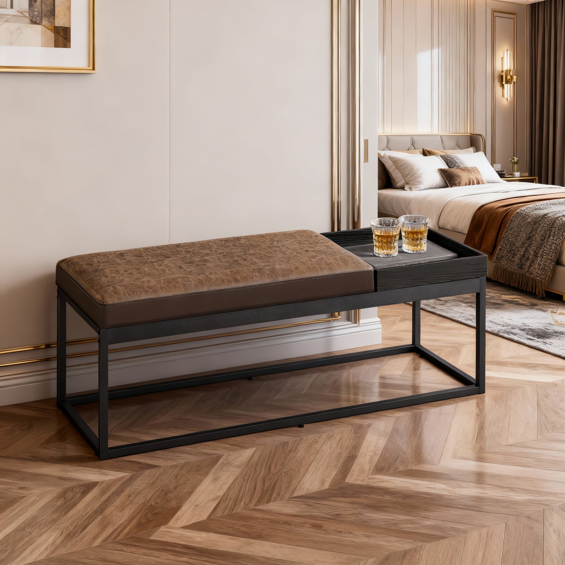 Reversible Ottoman Bench with Tray, End of Bed Seat, Shoe Storage, Steel Frame, Multi-Use Coffee Table & Footrest for Bedroom, Living Room, Walnut Brown