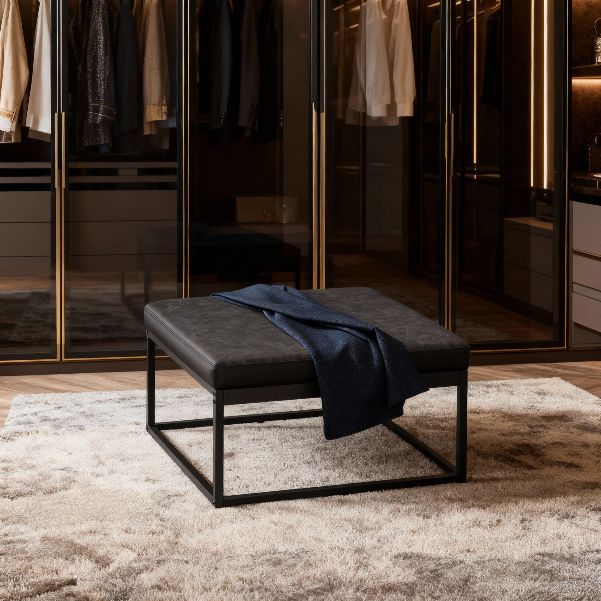 This award-winning square ottoman features a reversible top that transforms from a padded seat into a flat tabletop, offering versatile use as a footstool, coffee table, or side table. Its sturdy reinforced steel frame supports up to 660 lb and includes adjustable feet for stability on uneven floors. Upholstered in textured synthetic leather and filled with 25D high-resilience foam, it provides lasting comfort and maintains its shape over time. With clean lines and an open minimalist design in Ink Black, it adds a modern, airy aesthetic to living rooms while adapting to various layouts and needs.