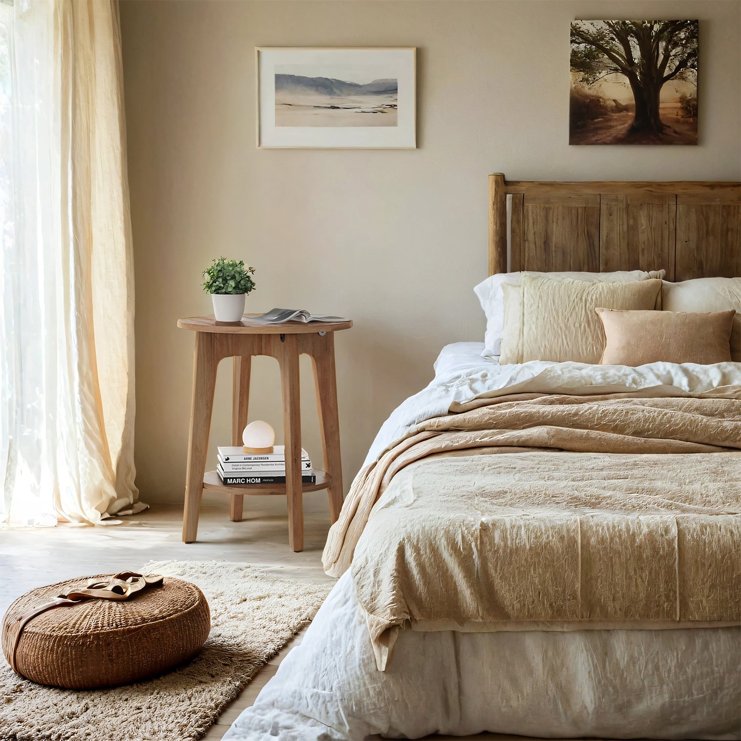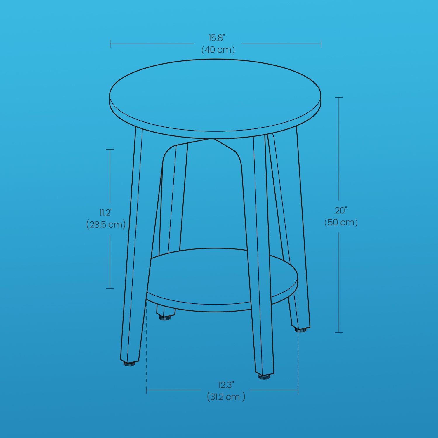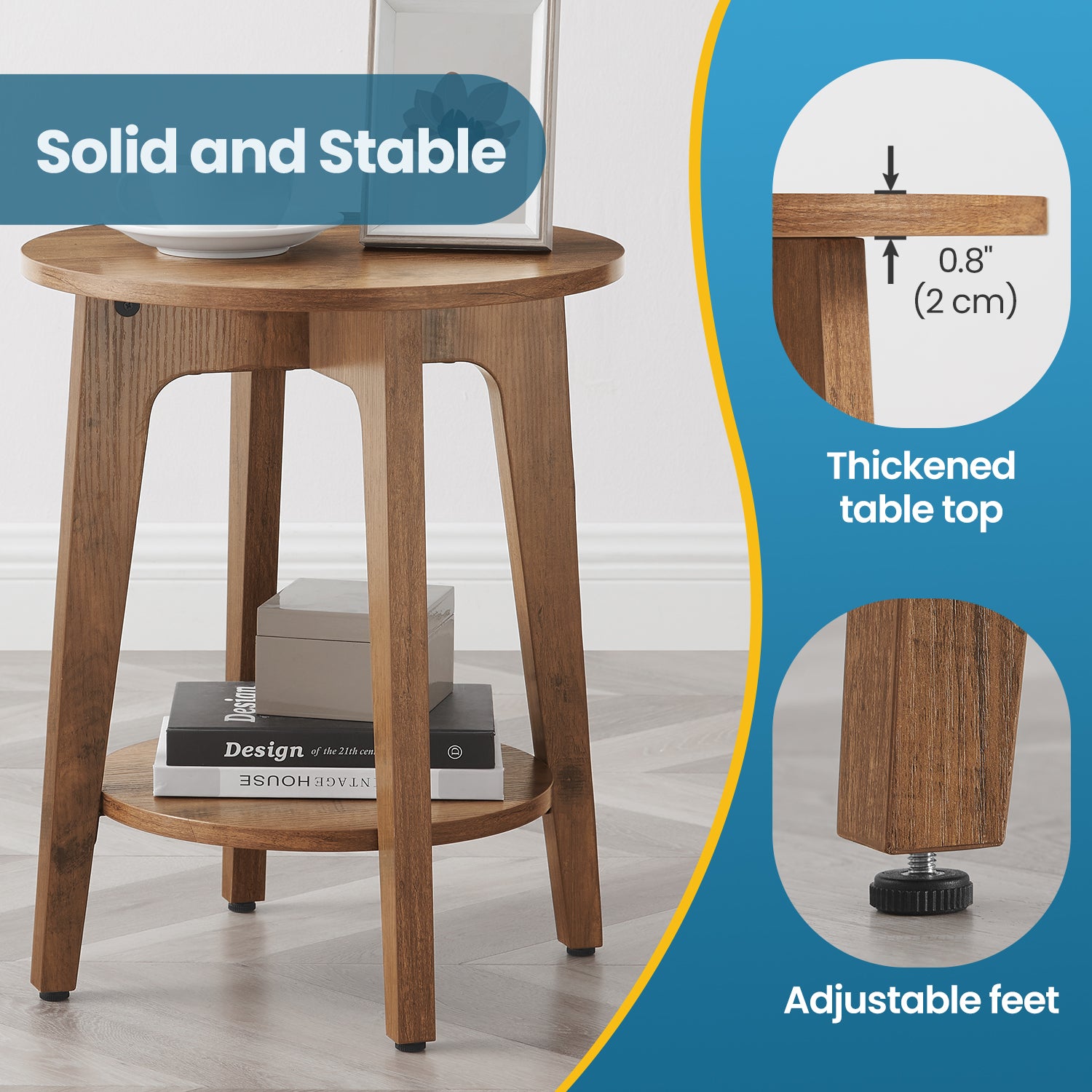 Round 2-Tier Side Table with Lower Shelf, End Table for Small Spaces, Holds 198lb, Quick Assembly, Living Room, Bedroom, Rustic Walnut