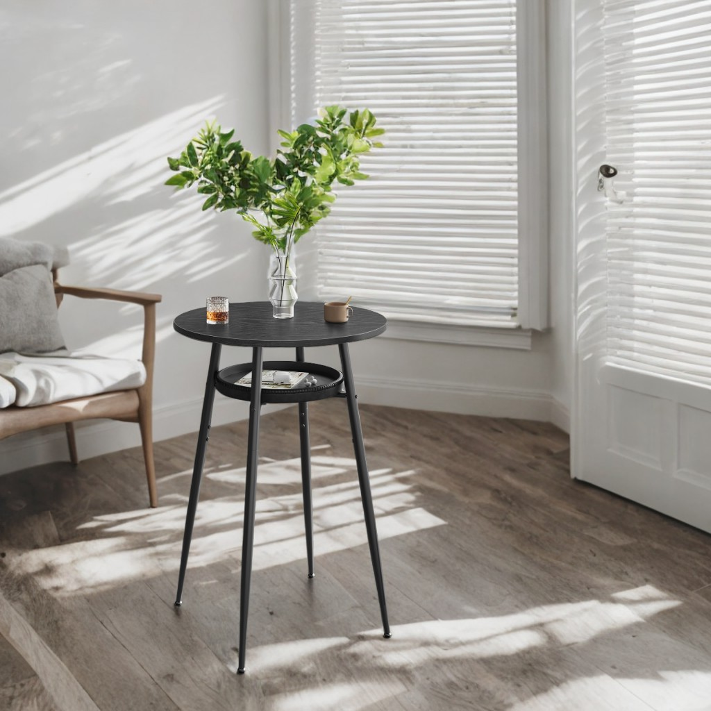 Round Bar Table with Hidden Storage, Mid-Century Modern Design, Synthetic Leather Top, Swivel Leveling Feet, Easy 4-Step Assembly, Ebony Black and Ink Black