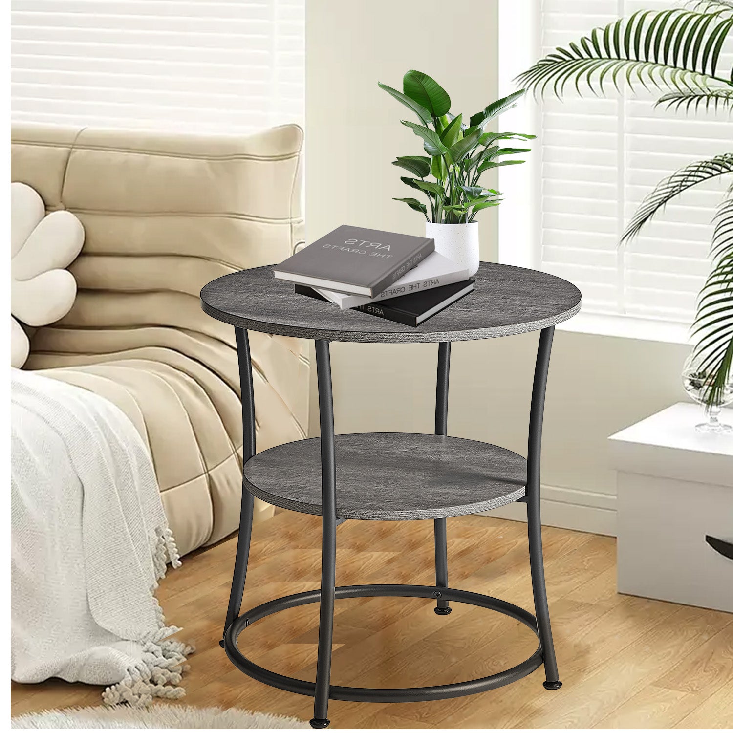 Round Side Table with Storage - 2-Tier Design, Steel Frame, 66lb Capacity, Space-Saving, Misty Gray and Black