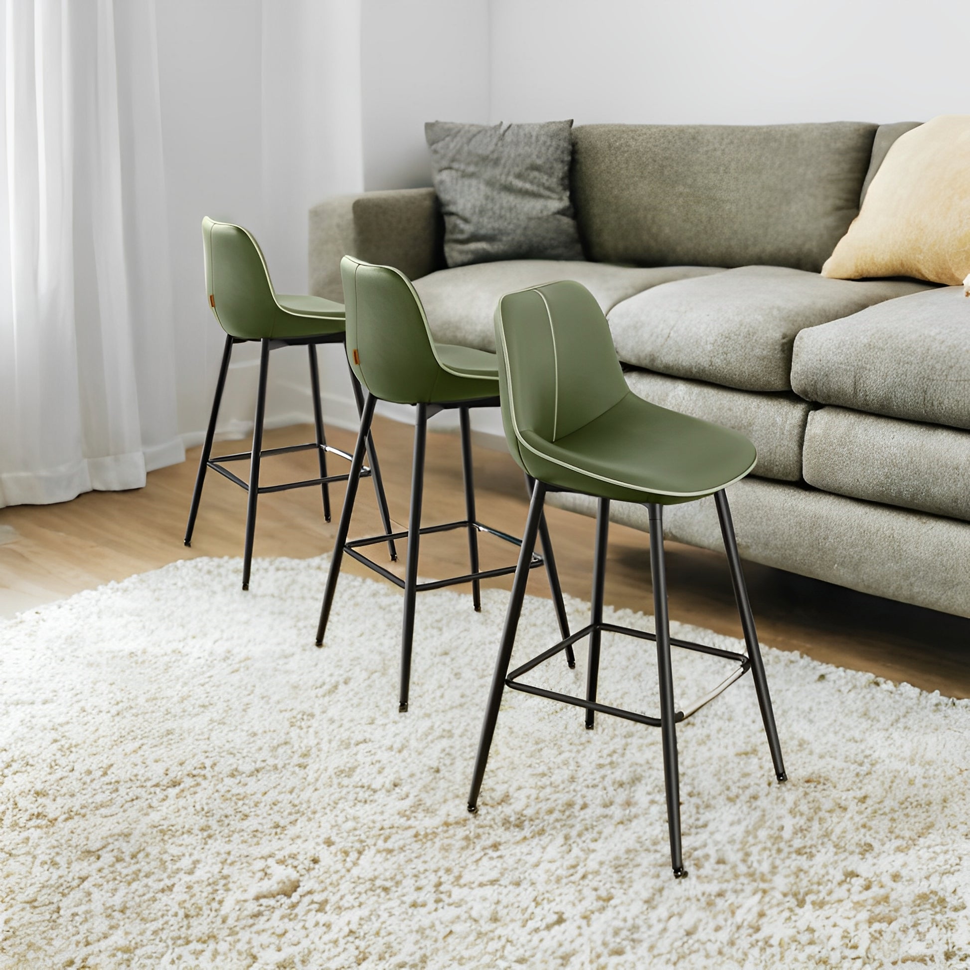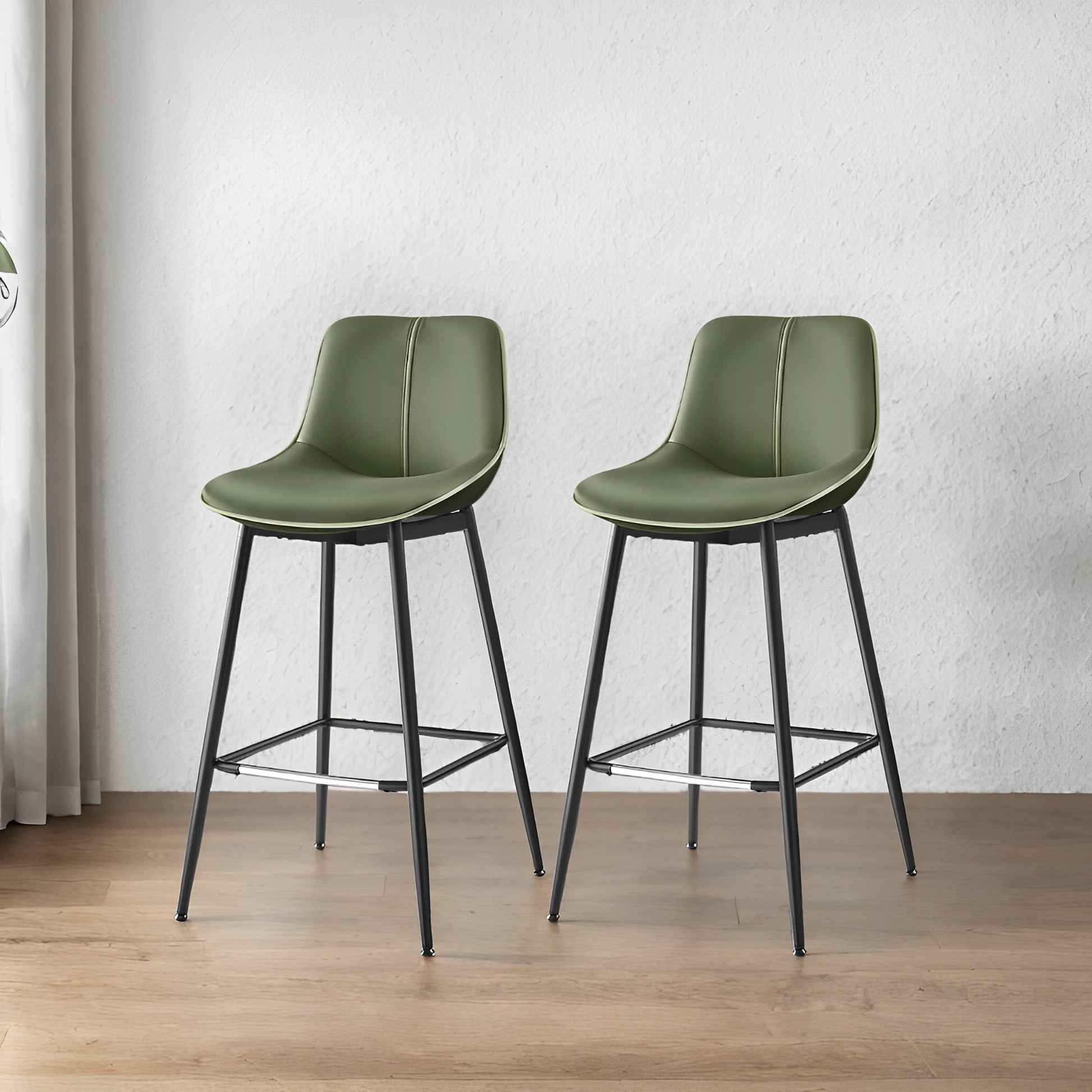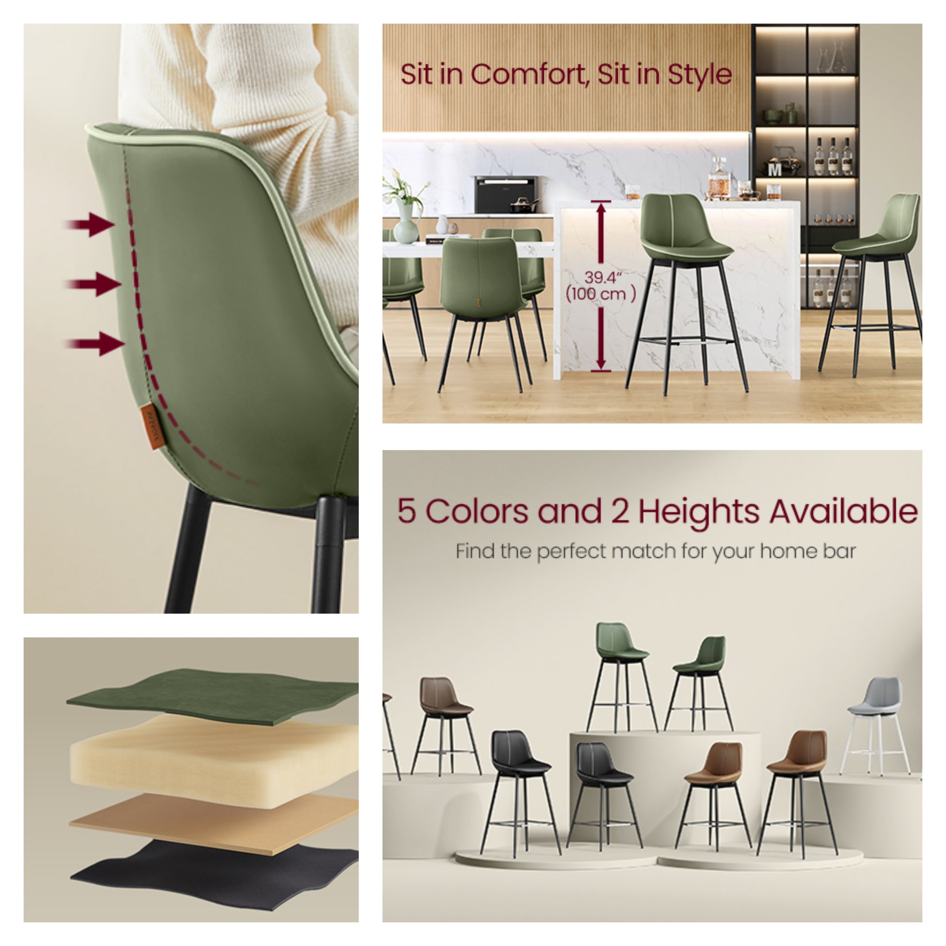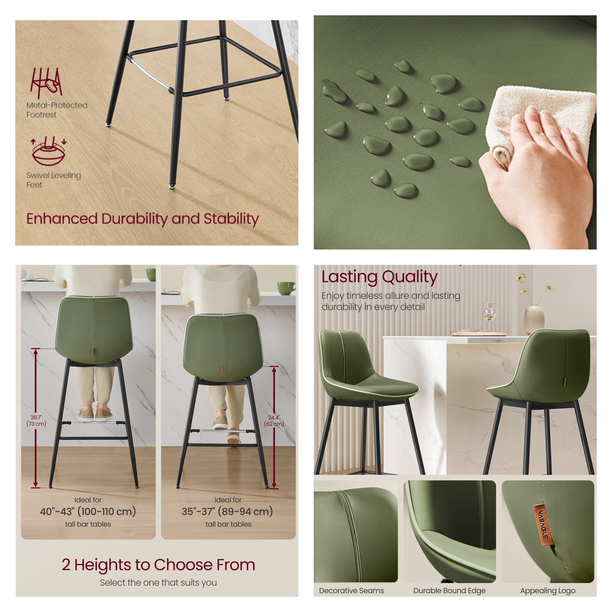 Set of 2 Bar Stools with Back Support, Ergonomic PU Leather Barstools, Sturdy Metal Frame, 28.7 Inch Counter Height, Easy to Assemble, Black