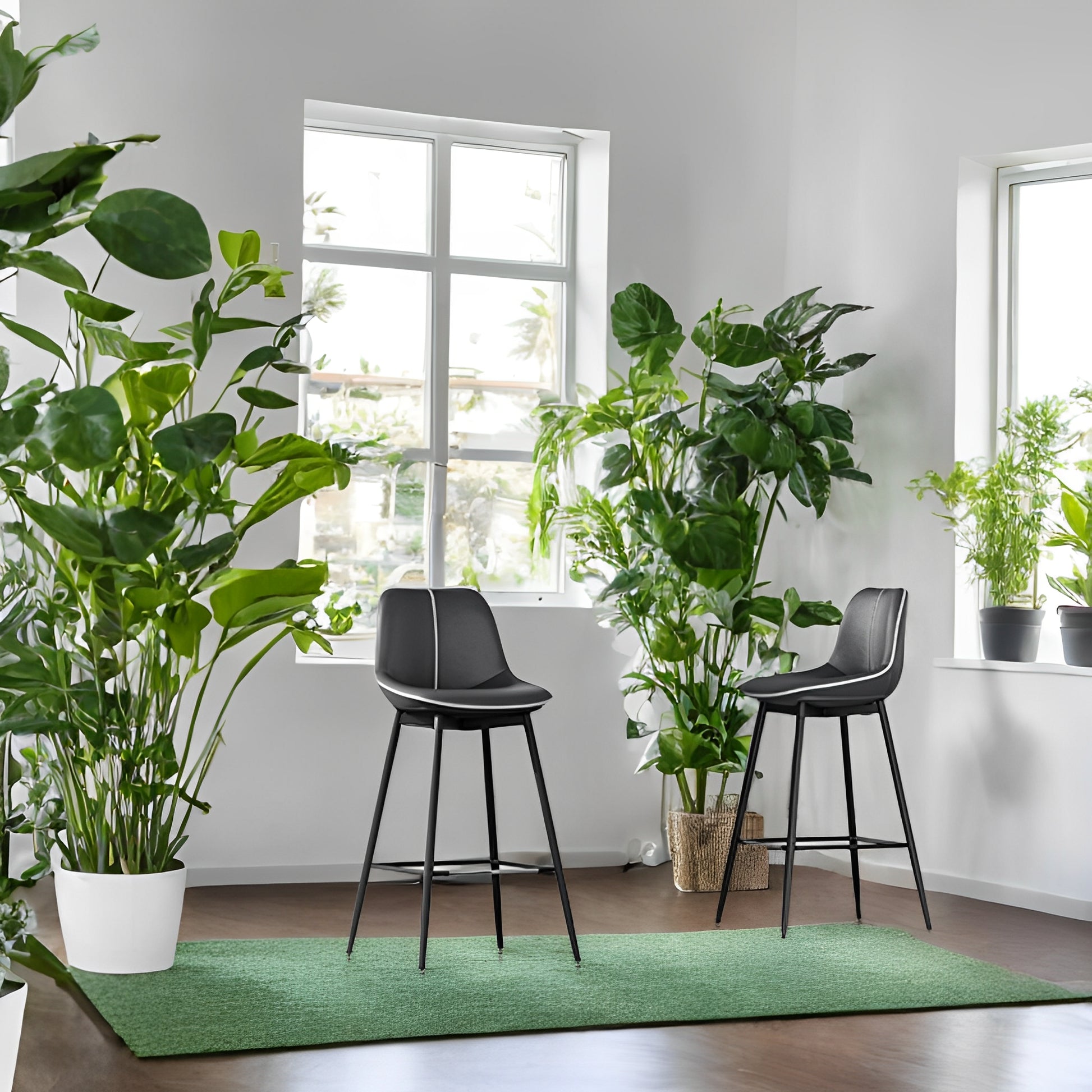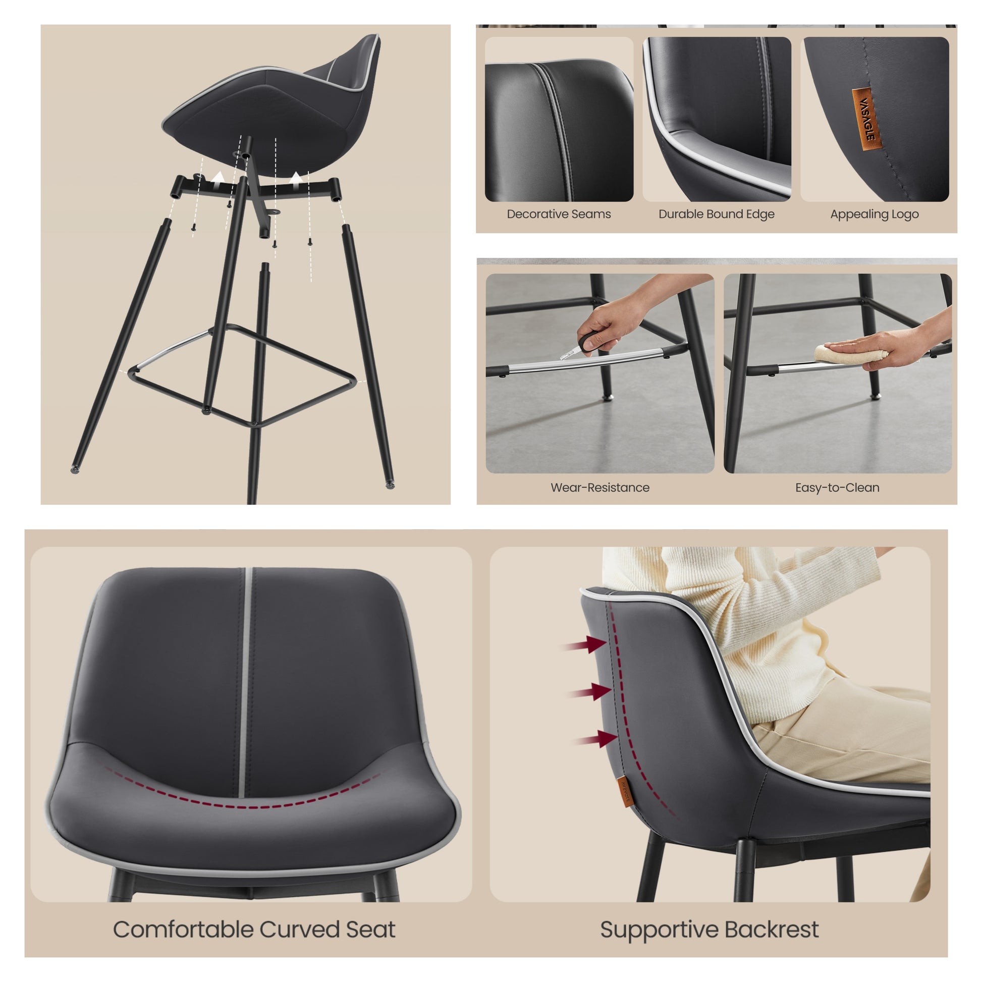 Set of 2 Bar Stools with Backrest, Ergonomic Design & Metal Legs, Synthetic Leather Upholstery, 28.7-Inch Counter Height Stools, Black