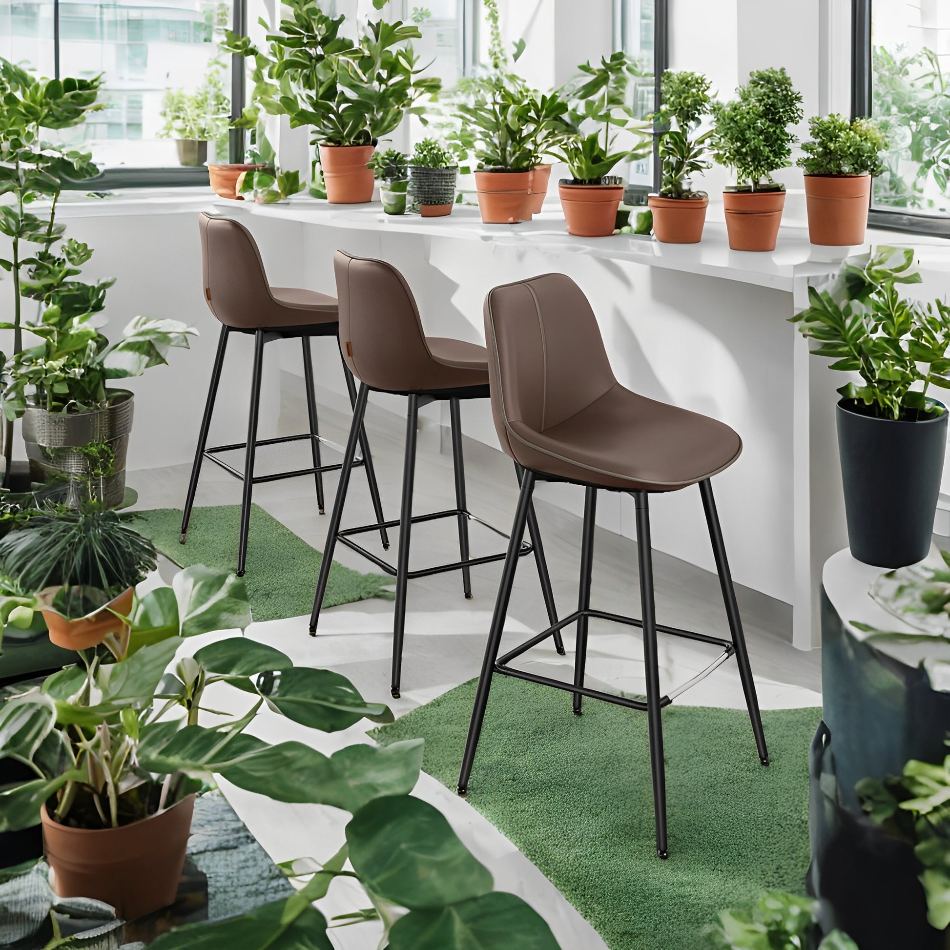 Set of 2 Bar Stools with Backrest, Ergonomic Design & Metal Legs, Synthetic Leather Upholstery, 28.7-Inch Counter Height Stools, Chestnut Brown