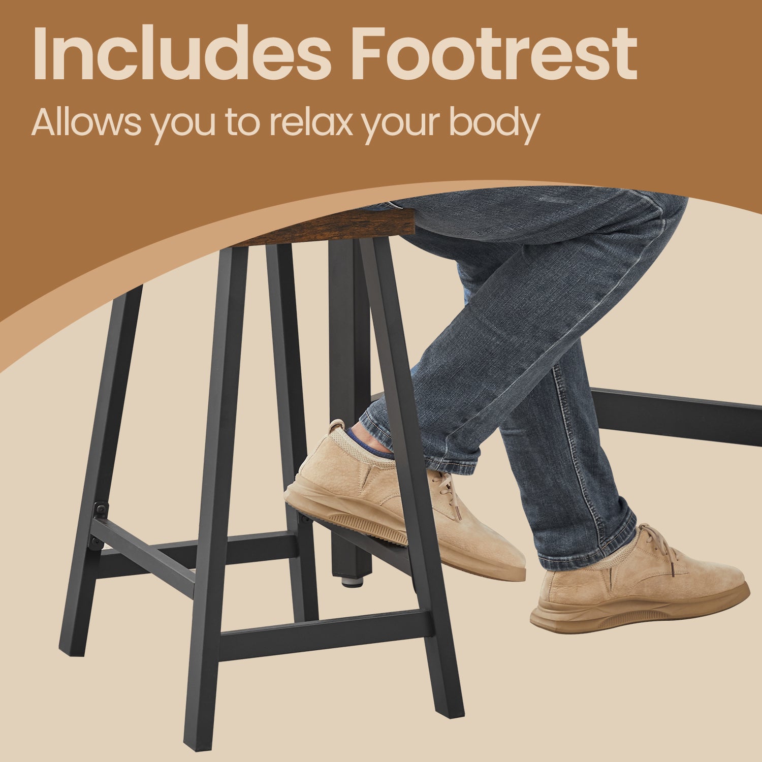 Set of 2 Industrial Bar Stools with Footrest, 23.6" Counter Height, Kitchen Bar Stools, Easy Assembly, Rustic Brown and Black