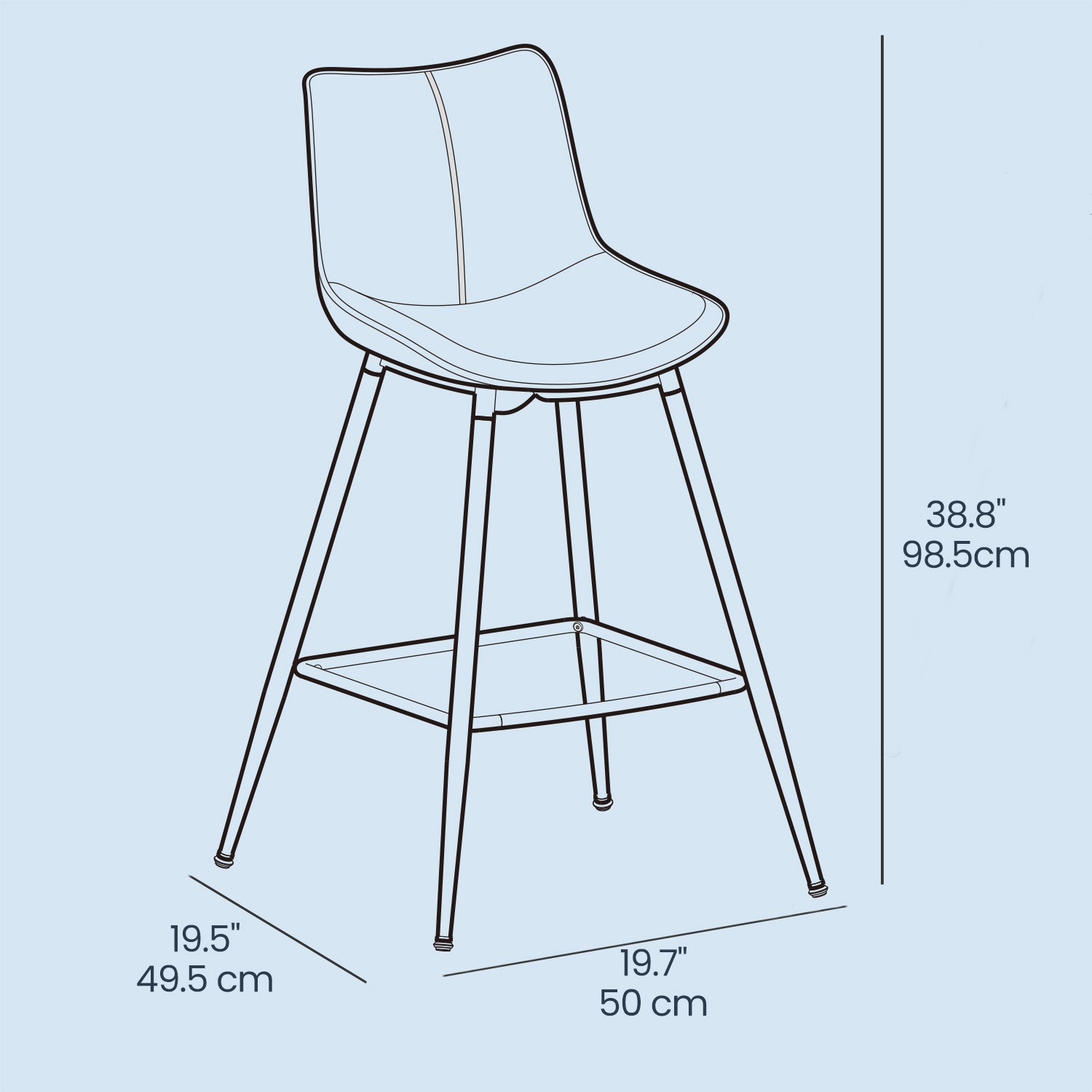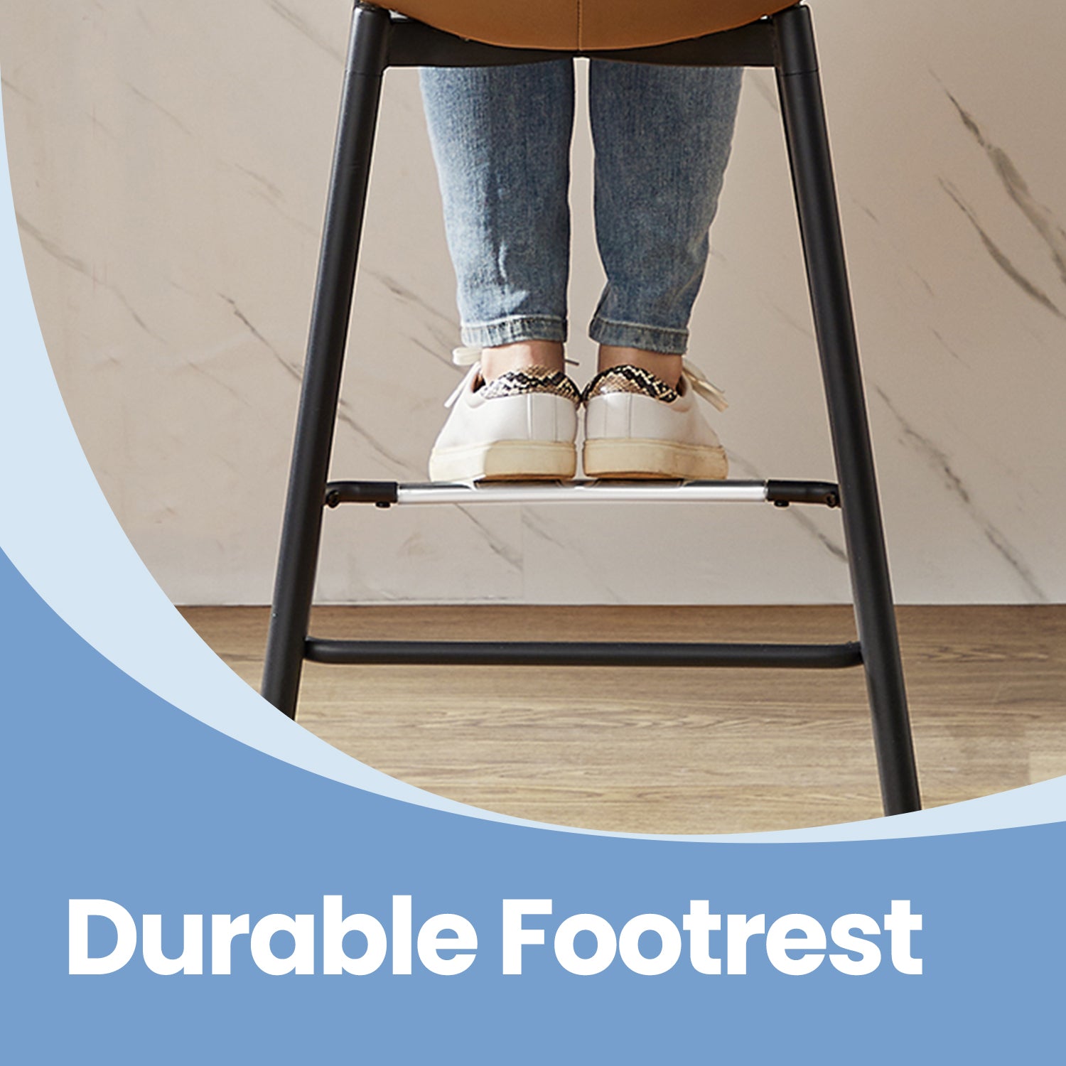Set of 2 Modern Bar Stools with Padded Backrest, Sturdy Metal Frame & Synthetic Leather Seat, 28.7-Inch Counter Height, Caramel Brown