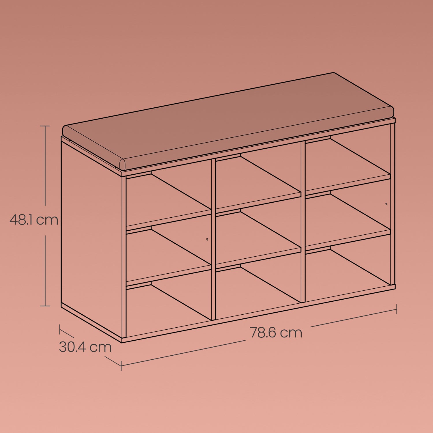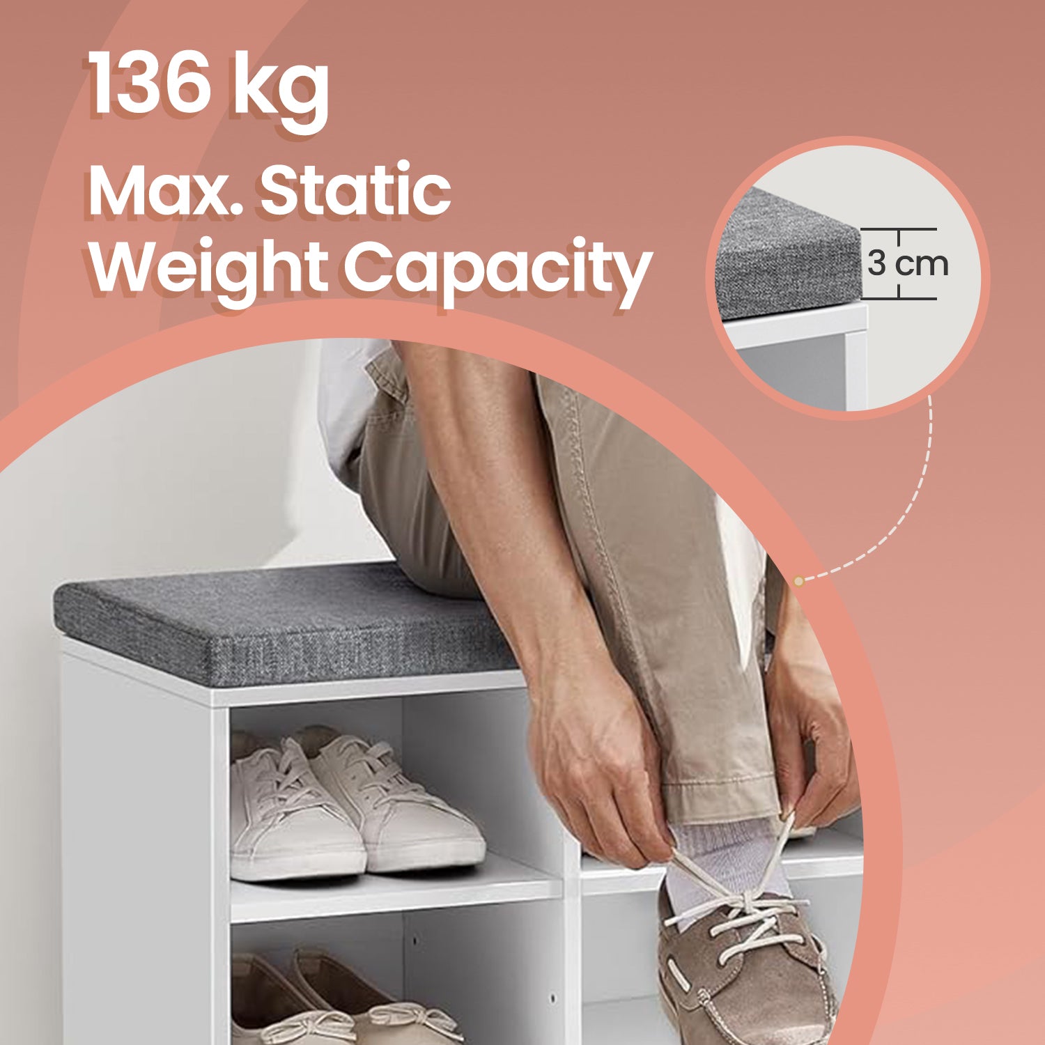 Shoe Bench, 9-Compartment Storage Bench with Removable Cushion, No-Tool Assembly Entryway Organizer,Cloud White and Dove Gray