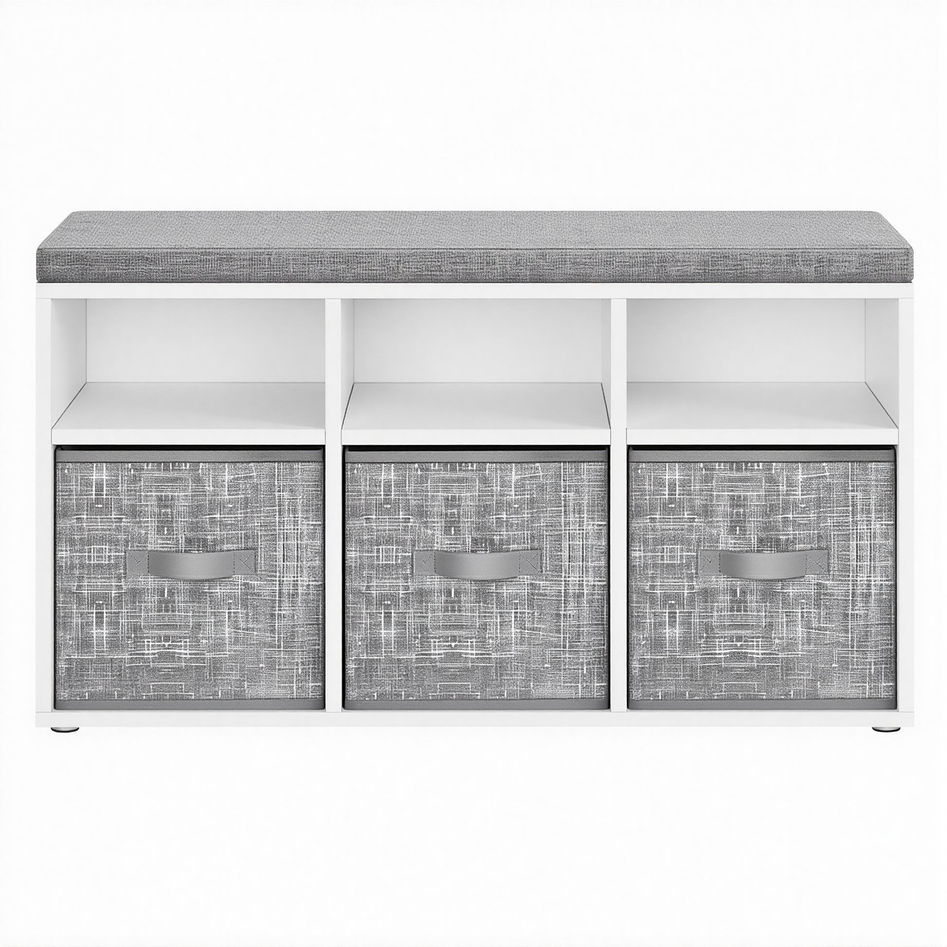 Shoe Storage Bench with Cushion, 6-Compartment Entryway Bench with 3 Adjustable Shelves and 3 Storage Boxes, Cloud White