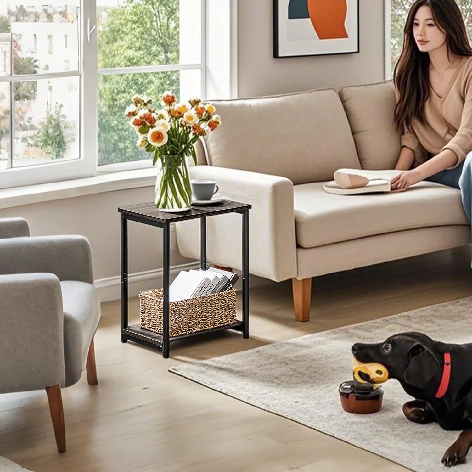 Side Tables Set of 2, Slim Industrial End Tables with Storage Shelf, Sturdy Steel Frame & Particleboard, Multi-Use for Living Room,Bedroom,Office, Chestnut Brown & Black