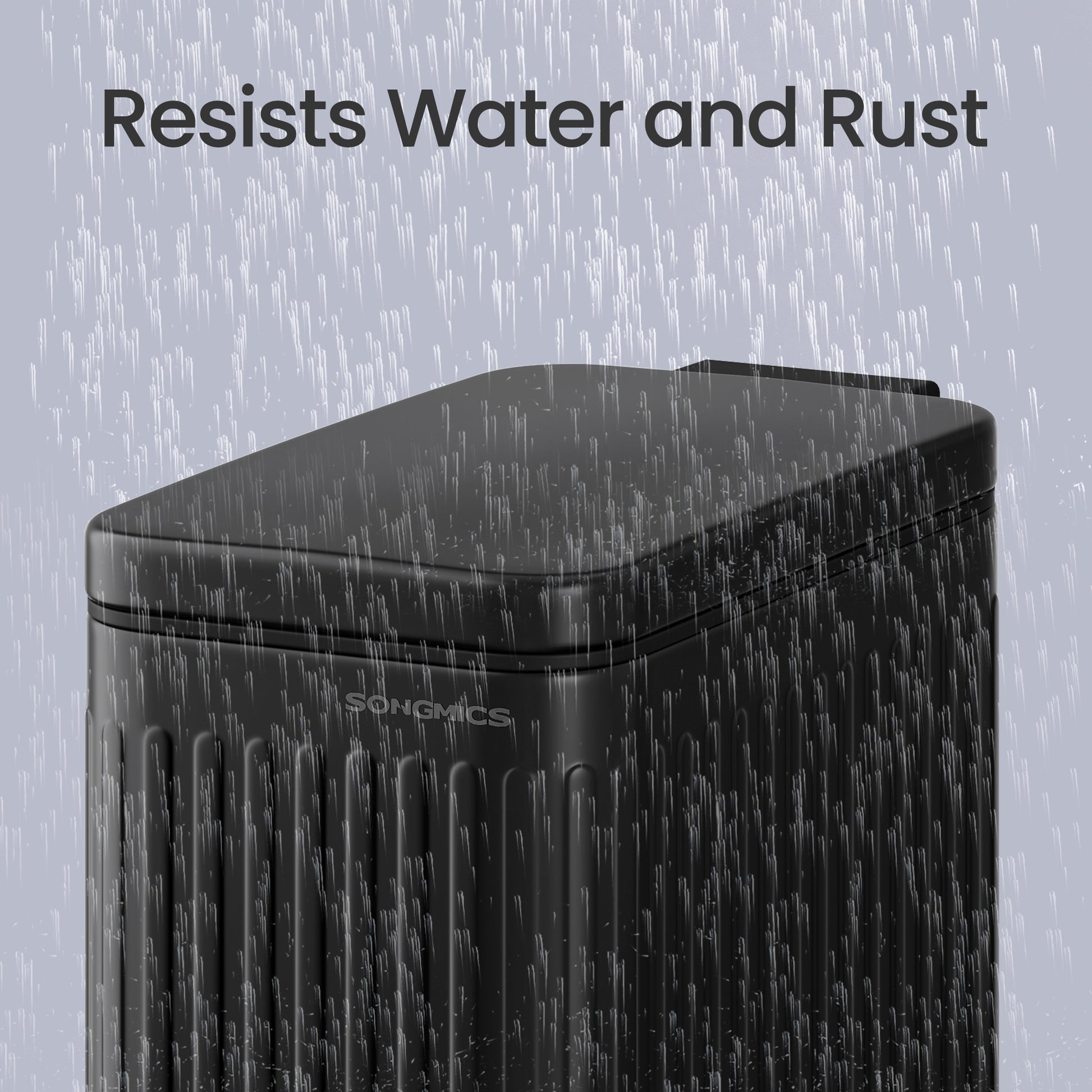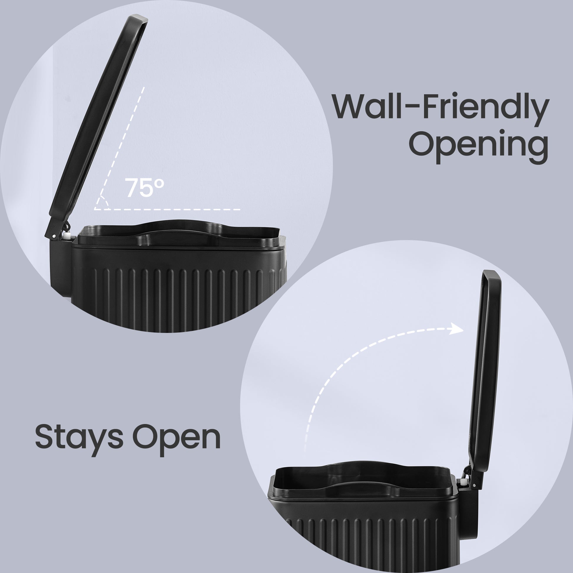 Slim Bathroom Trash Can with Lid, 1.6 Gallon Soft-Close Step Bin, Fluted Design for Small Spaces - Stainless Steel,Black