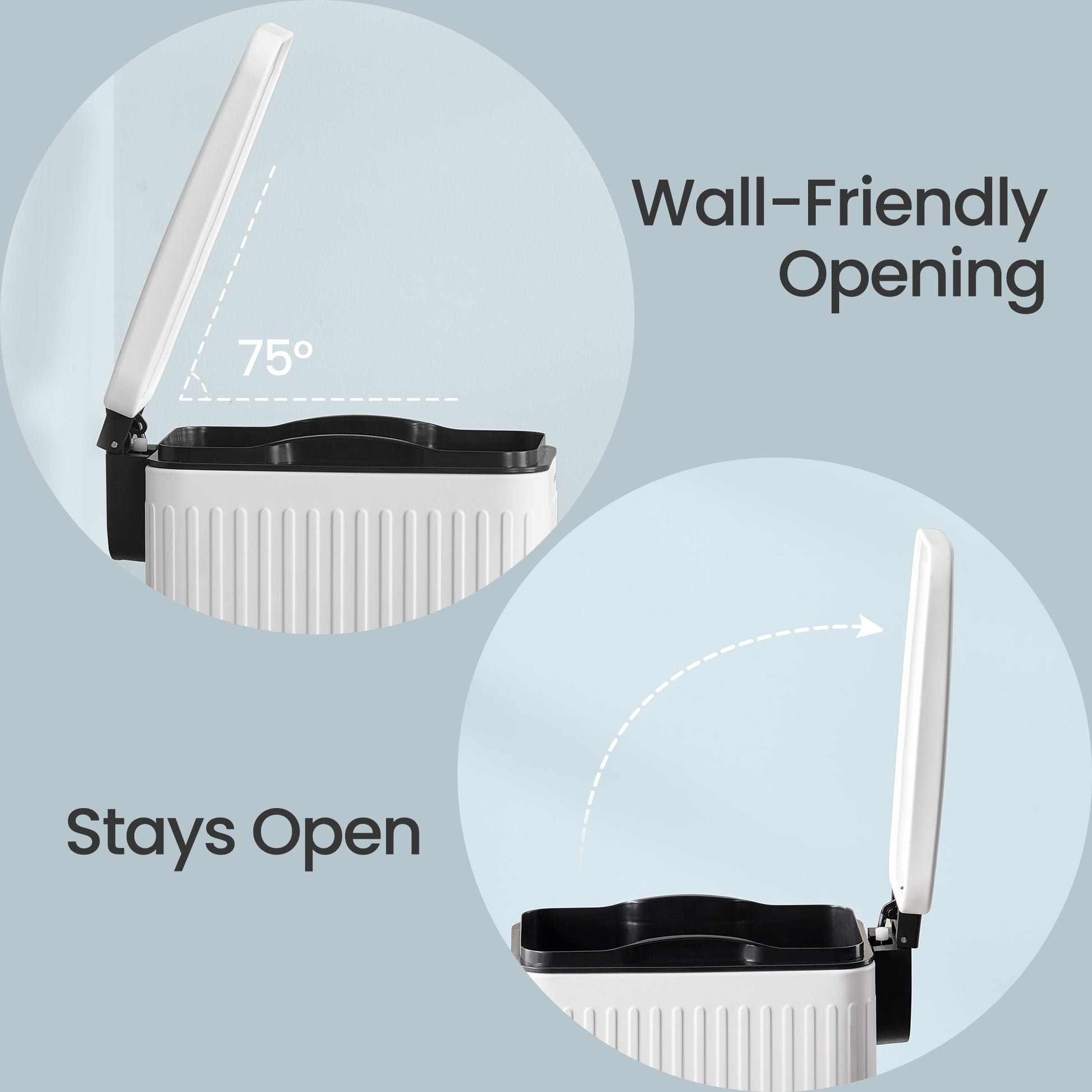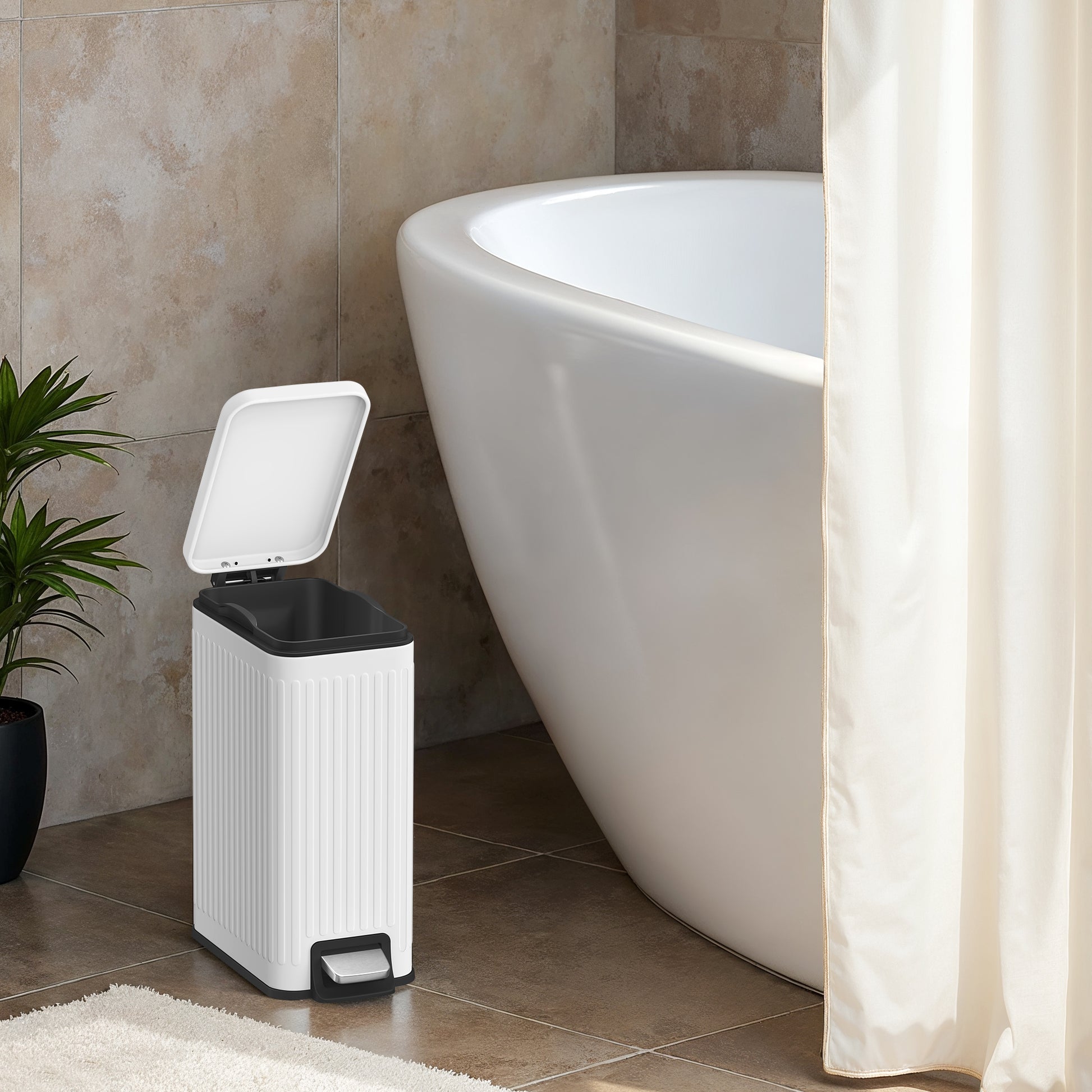 Slim Bathroom Trash Can with Lid, 1.6 Gallon Soft-Close Step Bin, Fluted Design for Small Spaces - Stainless Steel,Black,White