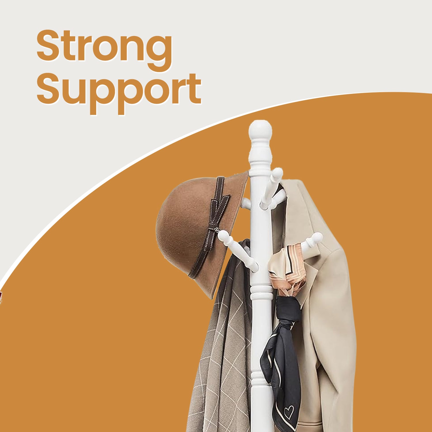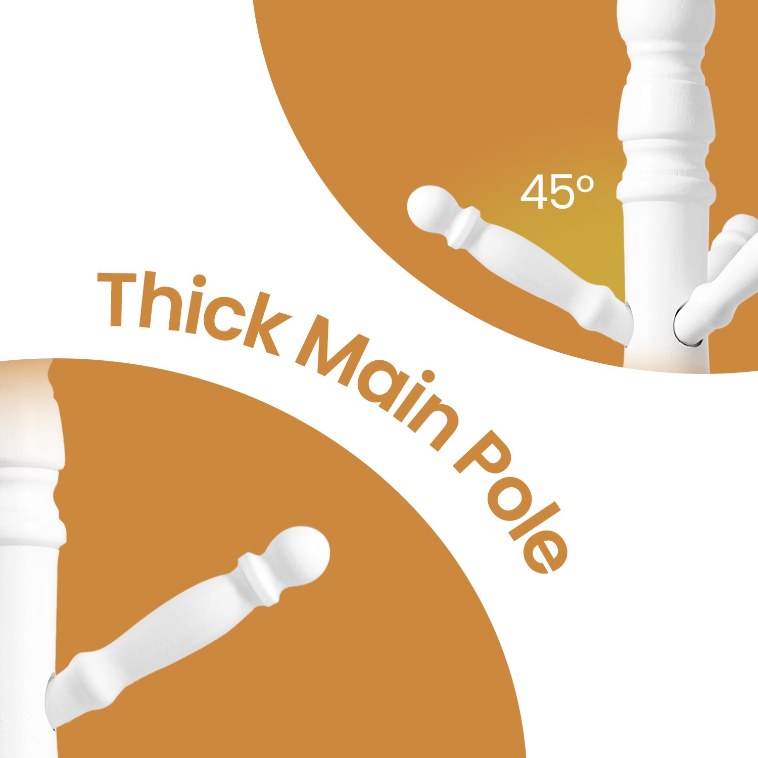 Solid Wood Entryway Coat Rack Stand, 10-Hook Free Standing Hall Tree for Jackets, Hats, Bags, Tri-Leg Base, Cloud White
