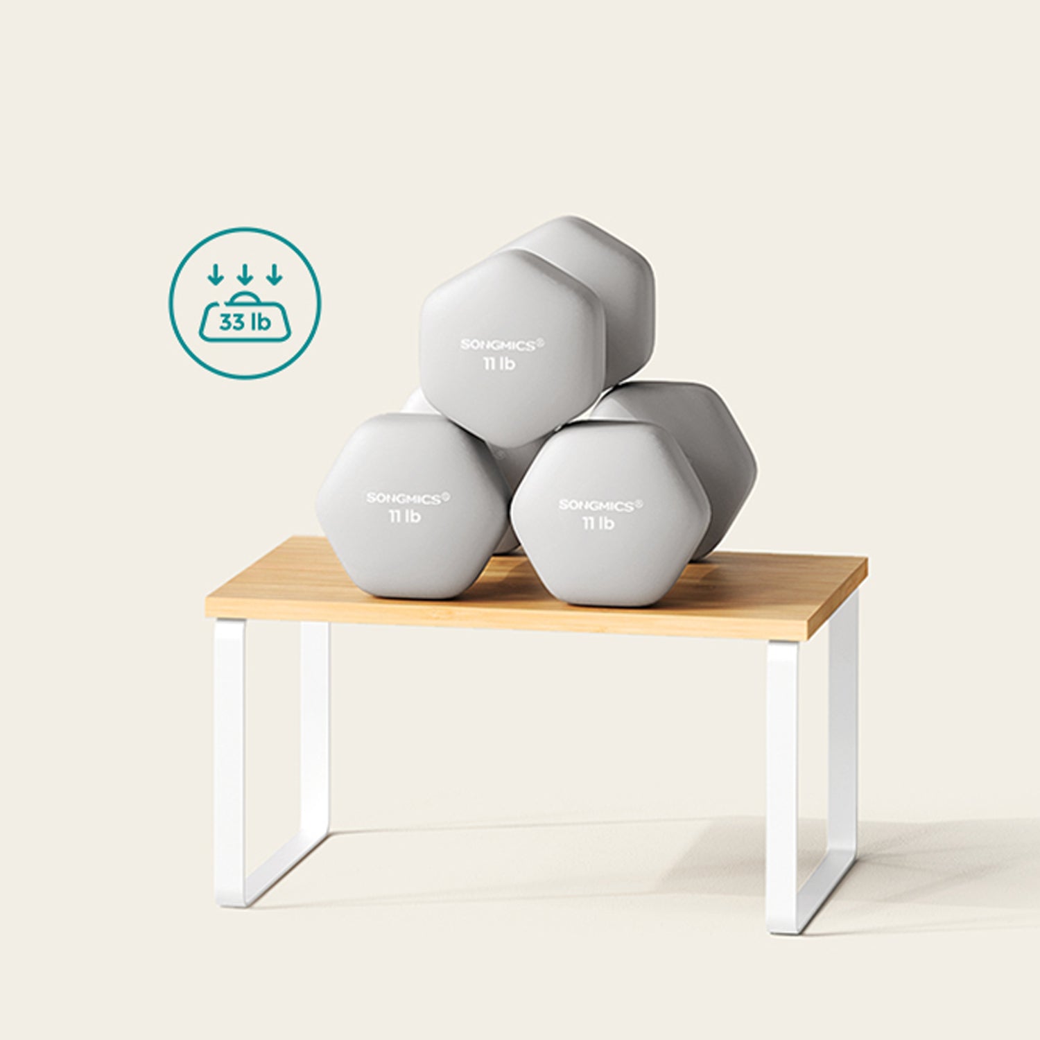 Stackable Kitchen Shelf Organizers – Sturdy Engineered Wood & Metal, Adjustable & Space-Saving for Spices, Cans, Utensils, or Cat Feeding ,Set of 2, White