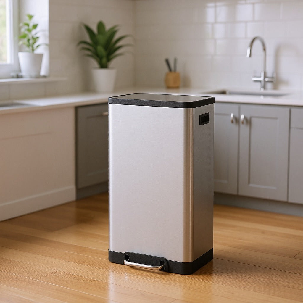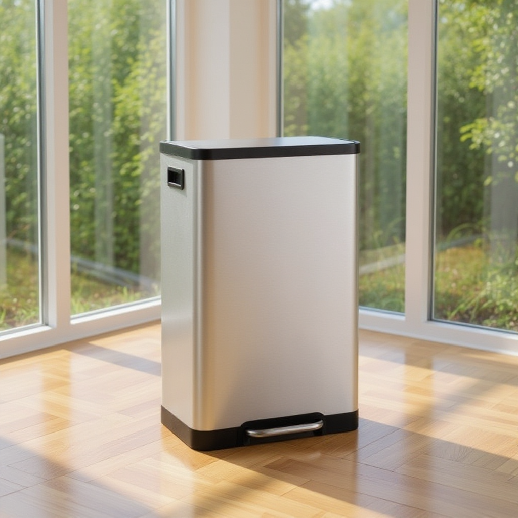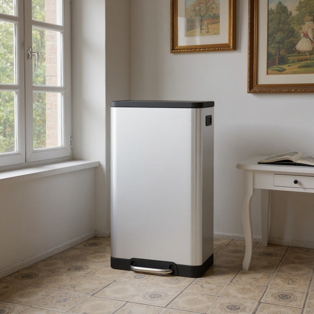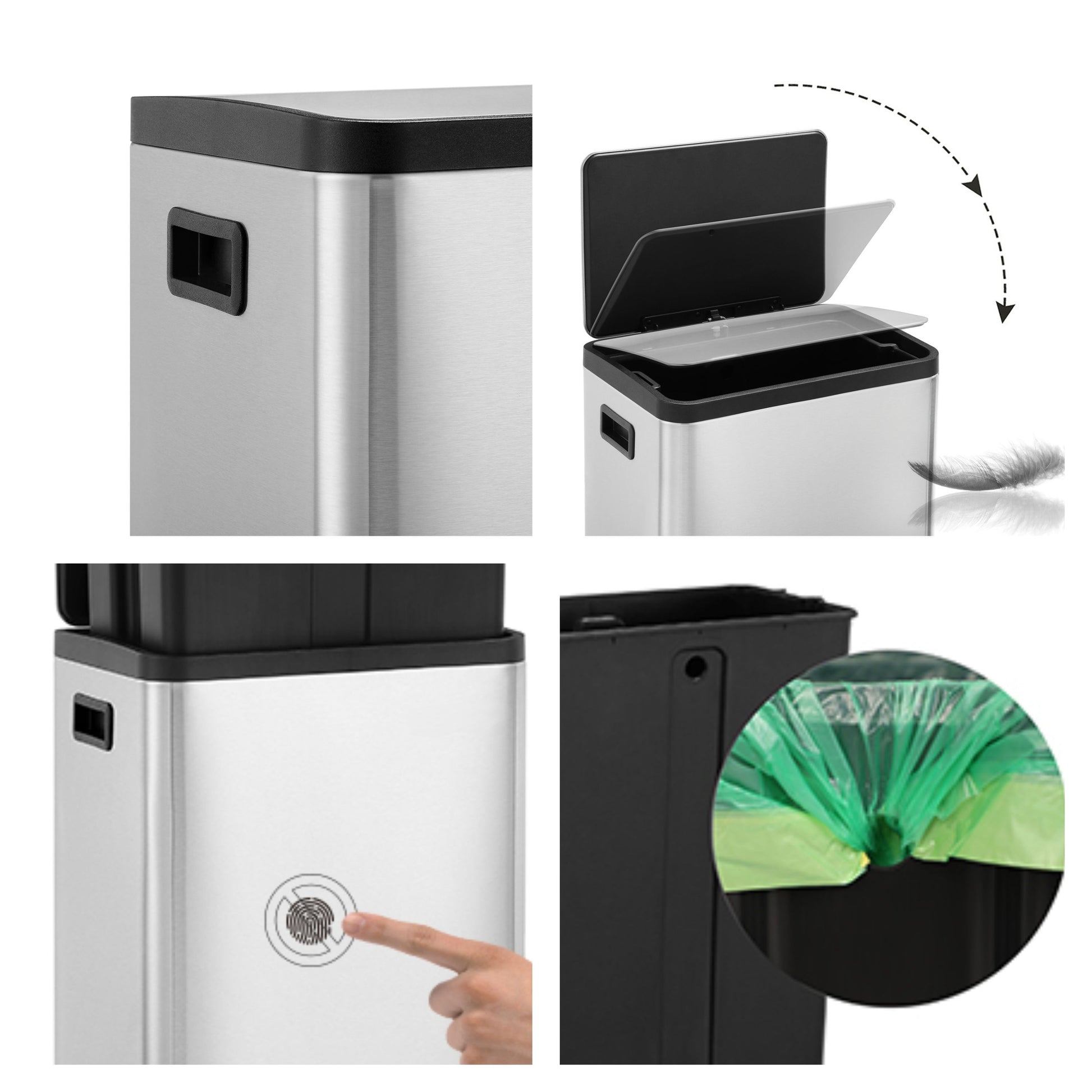 Stainless Steel 12-Gallon Step Trash Can, Soft-Close Lid with Inner Bucket, Fingerprint Proof Kitchen & Living Room Bin,Silver