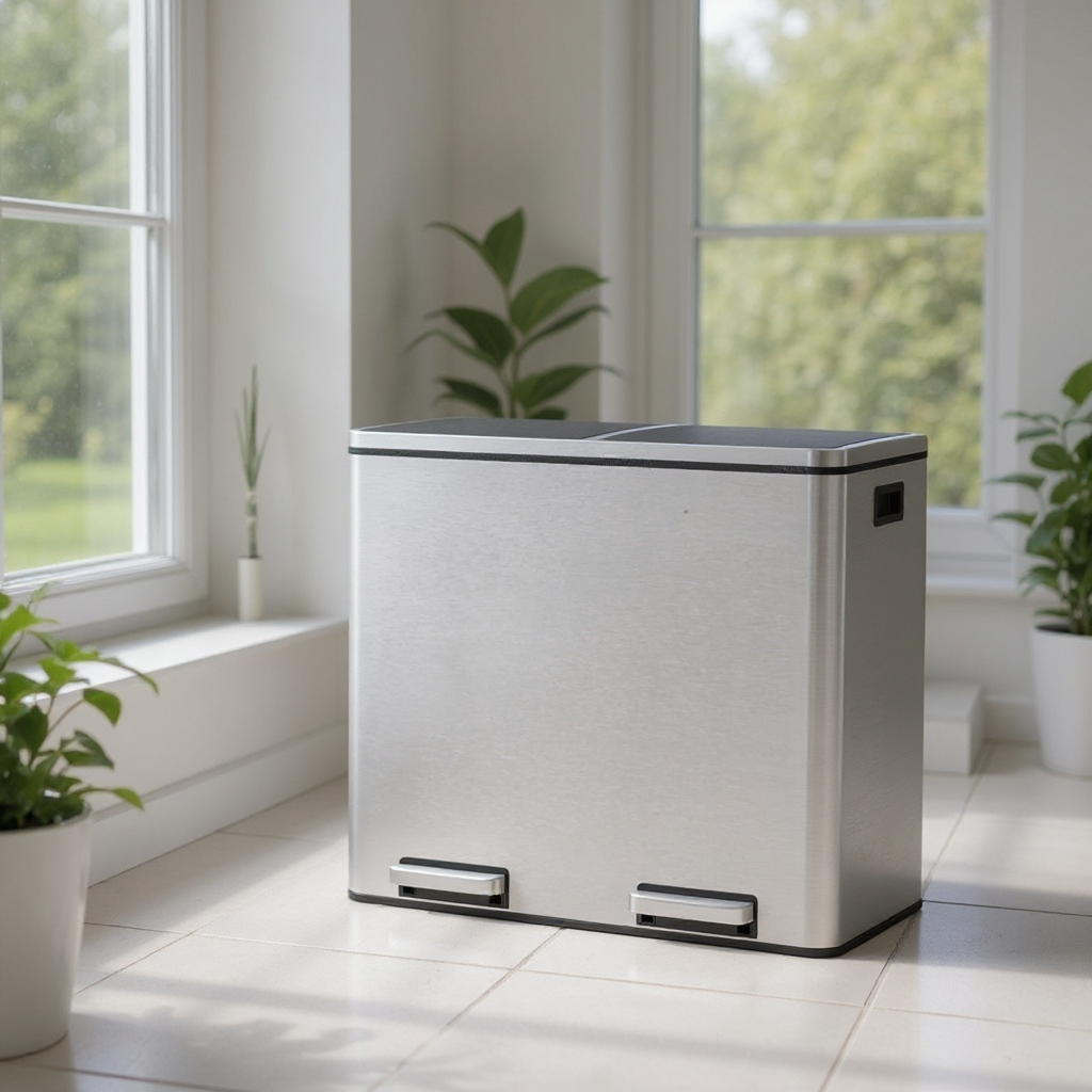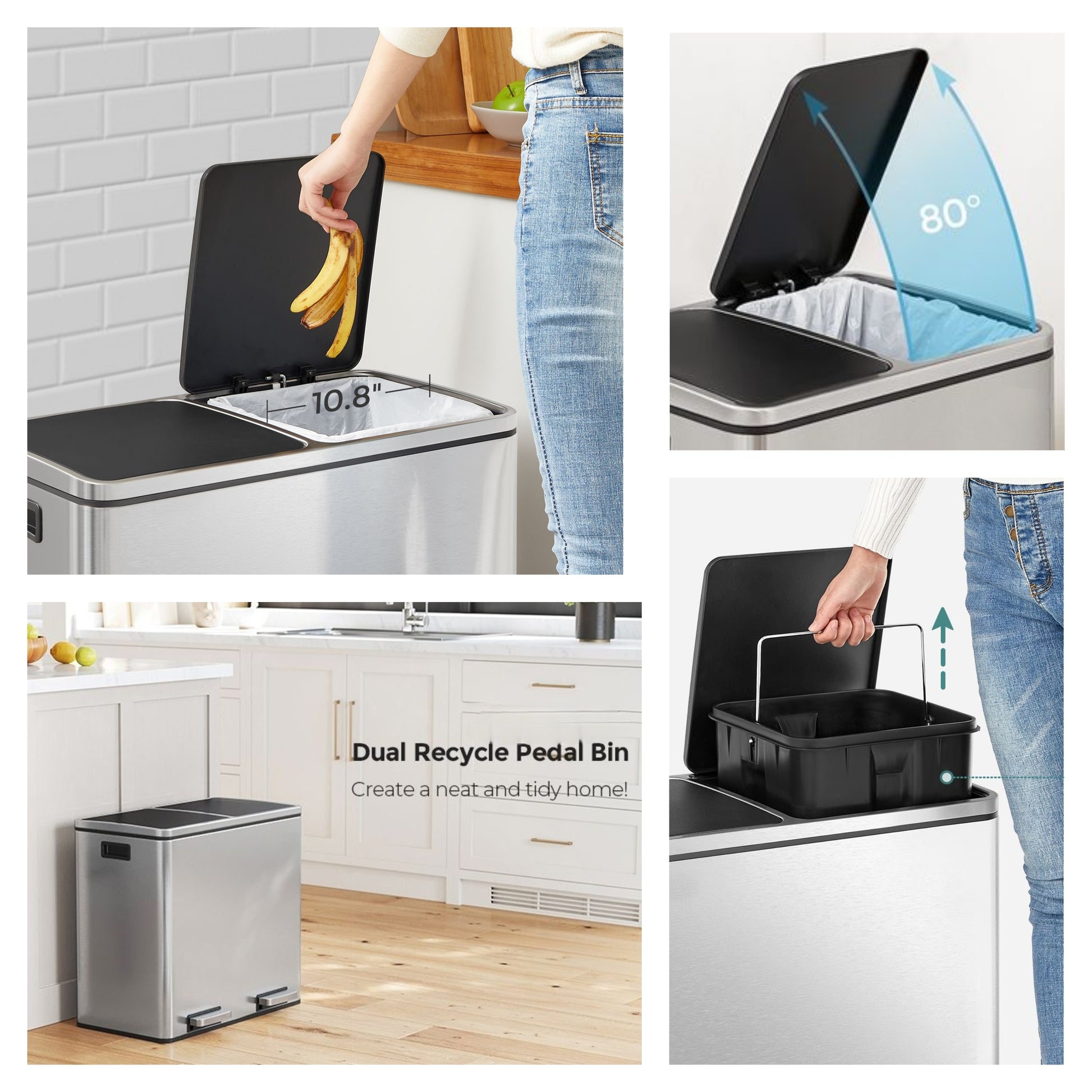 Stainless Steel 13 Gallon Step Trash Can, Soft-Close Lid with Inner Bucket, Kitchen & Office Bin,Brown