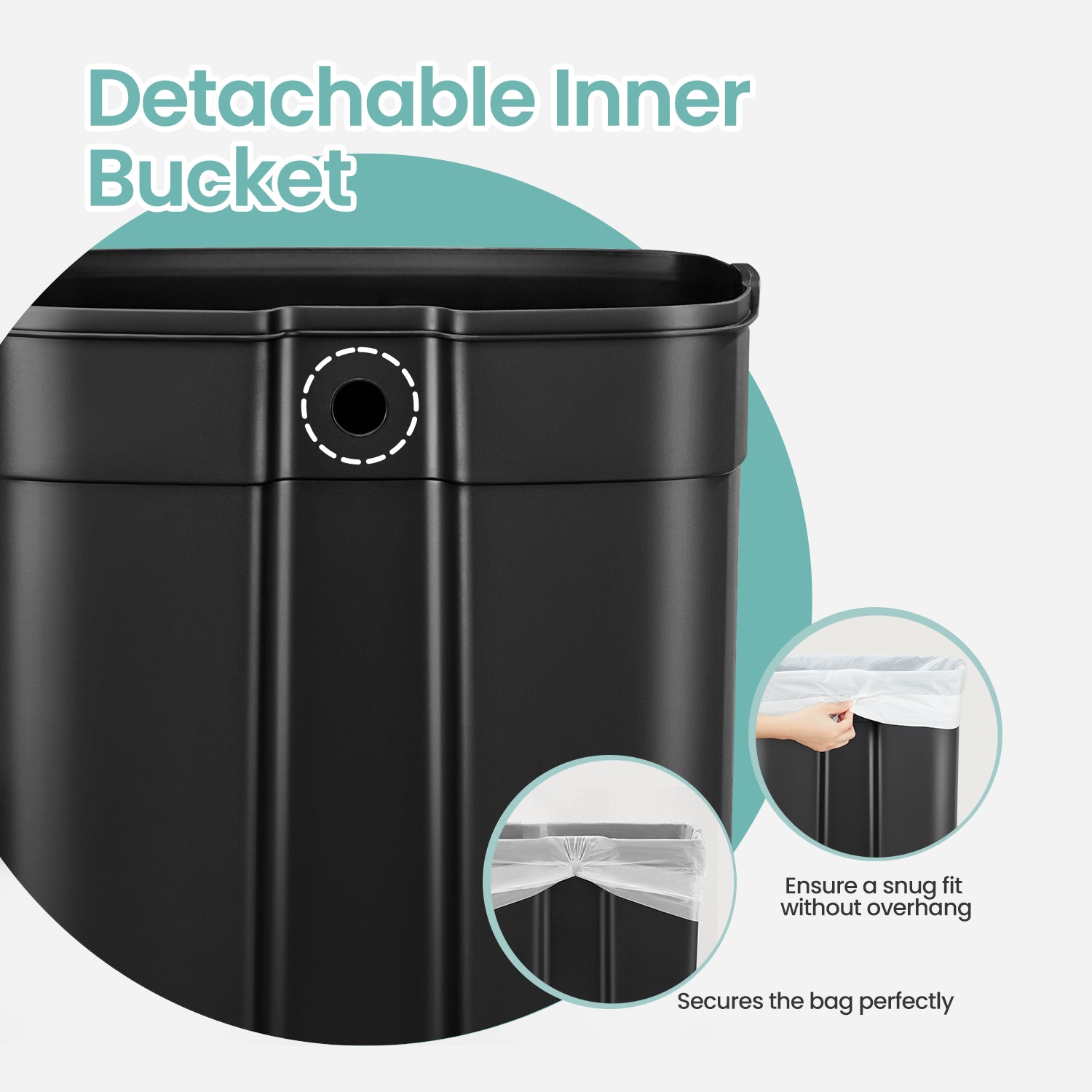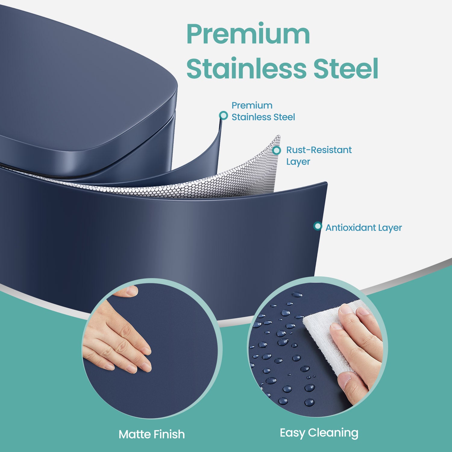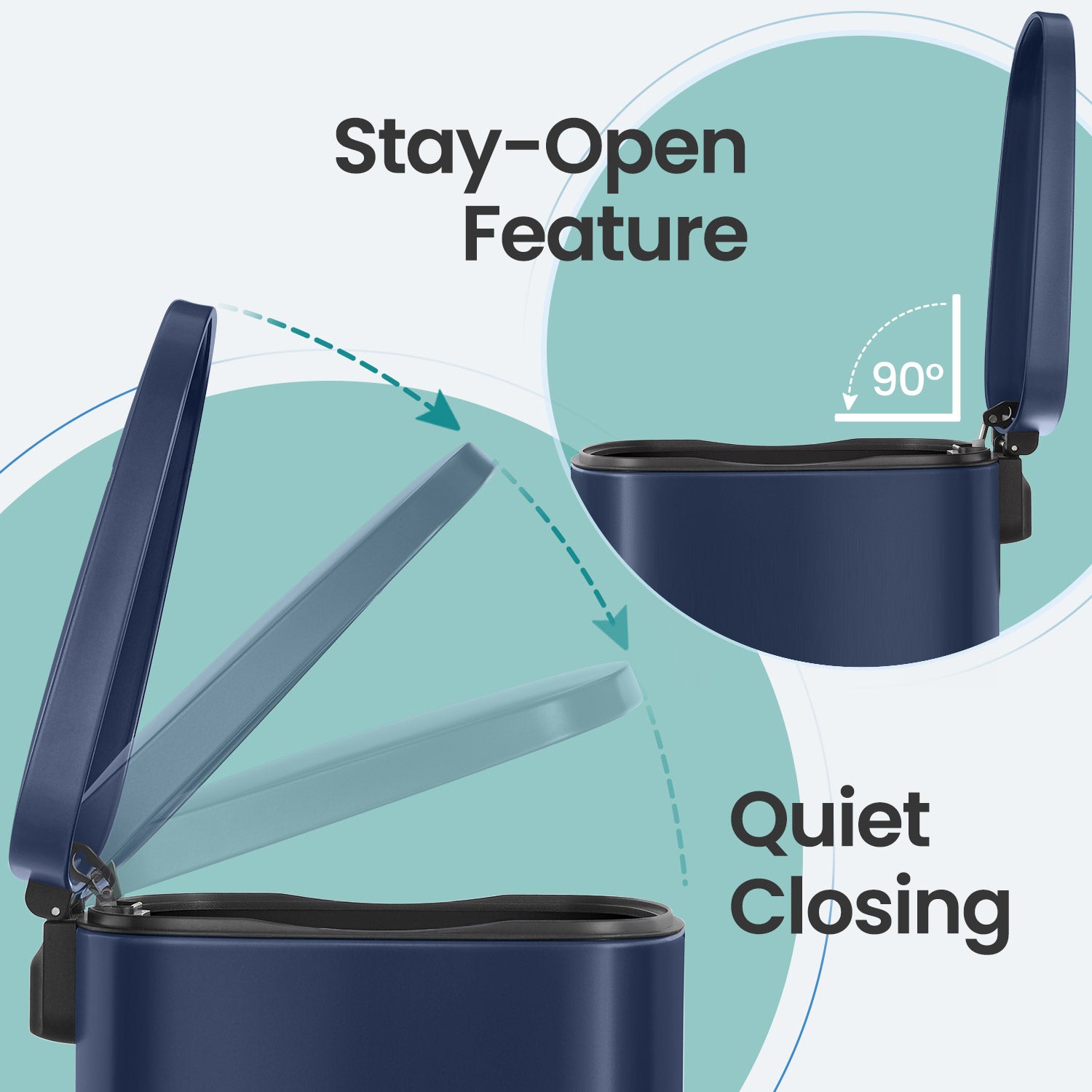 Stainless Steel 13 Gallon Step Trash Can, Soft-Close Lid with Odor Seal & Inner Bucket, Kitchen Recycling Bin,Midnight Blue