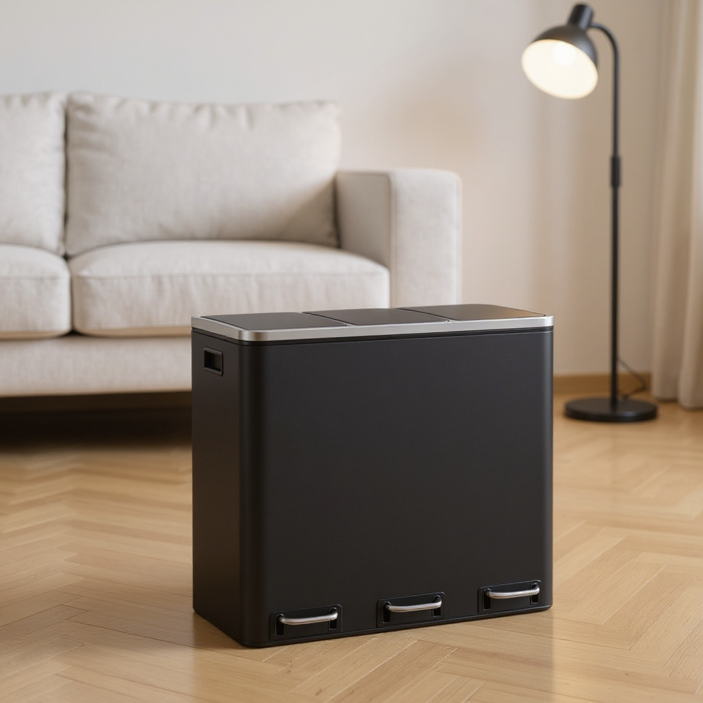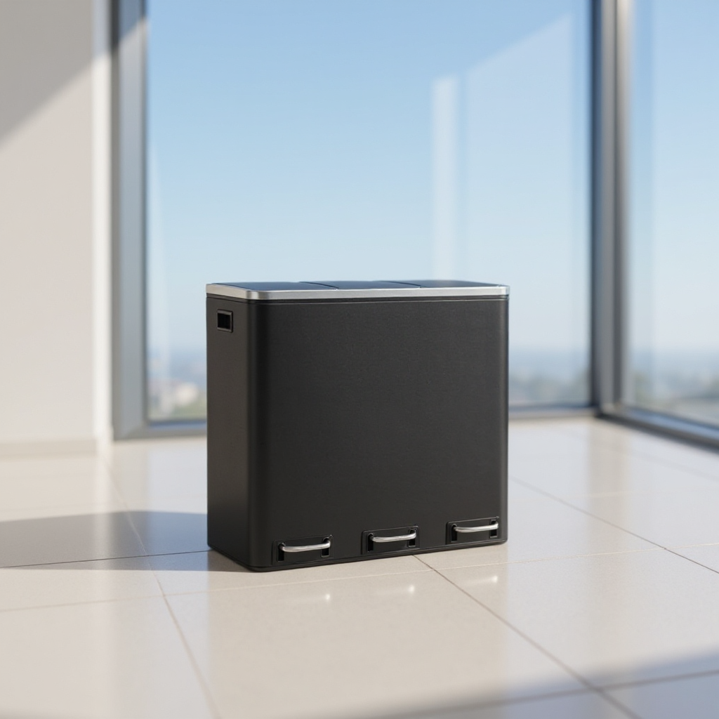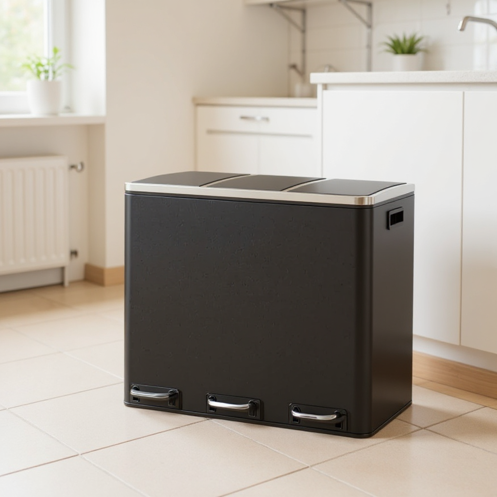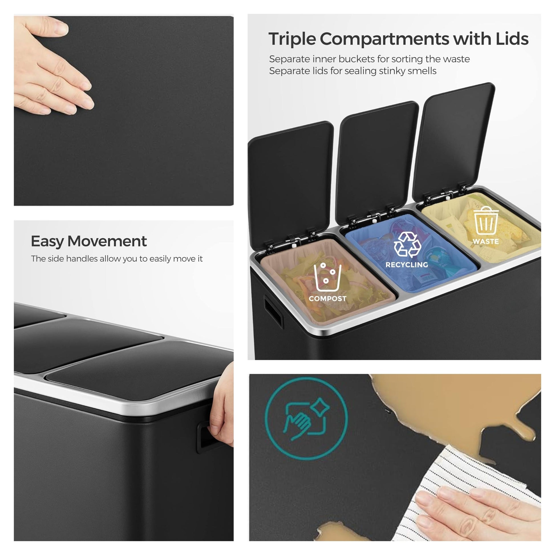 Stainless Steel 14.4 Gallon Triple Compartment Recycling Bin, 3 x 4.8 Gallon Soft-Close Trash Cans with Pedals for Kitchen Waste Sorting,Black