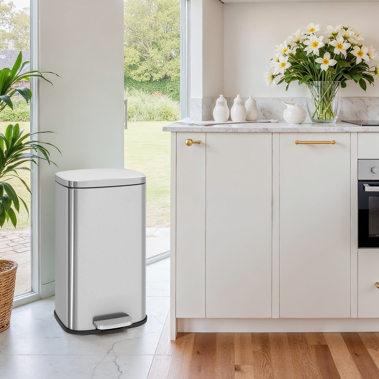 Stainless Steel 8 Gallon Step Trash Can, Soft-Close Lid with Inner Bucket, Compact Kitchen & Office Bin,Silver