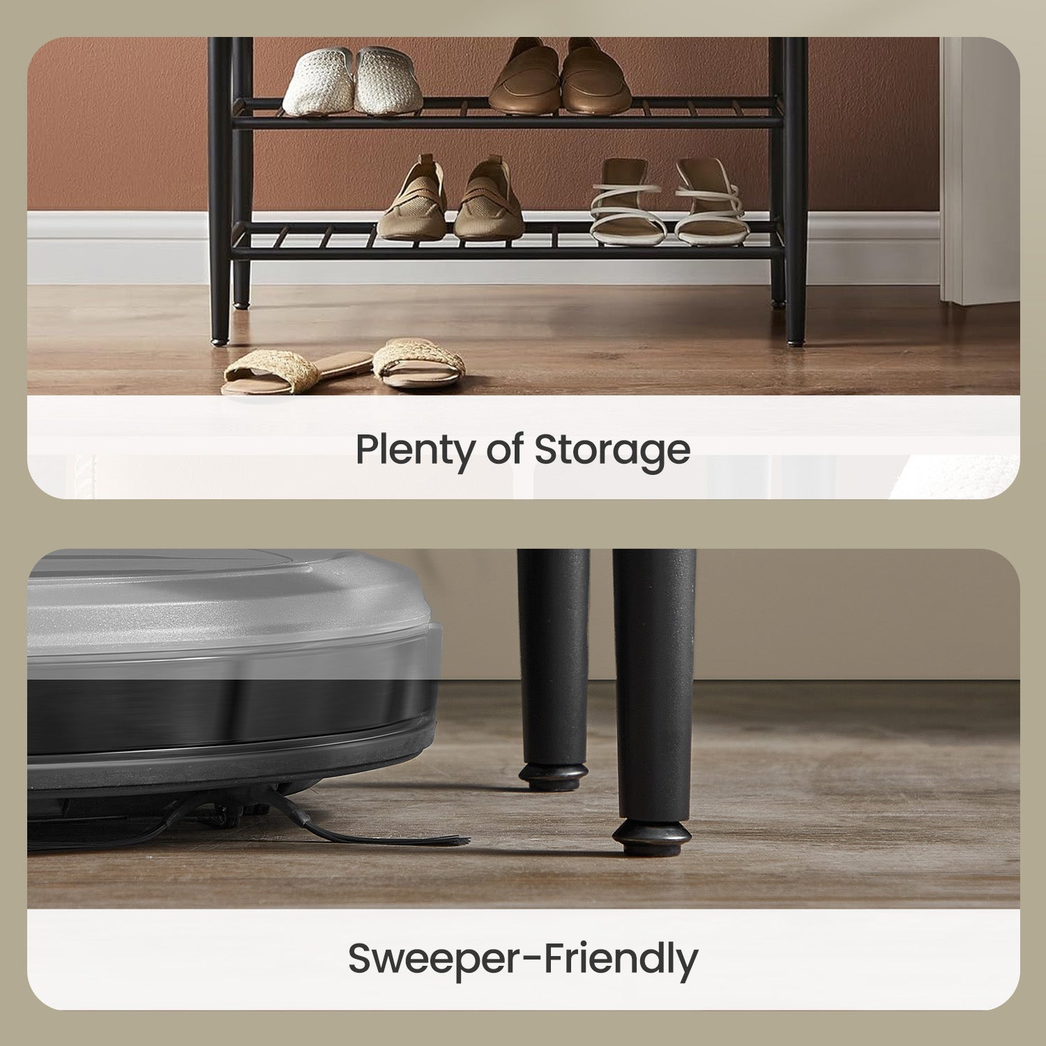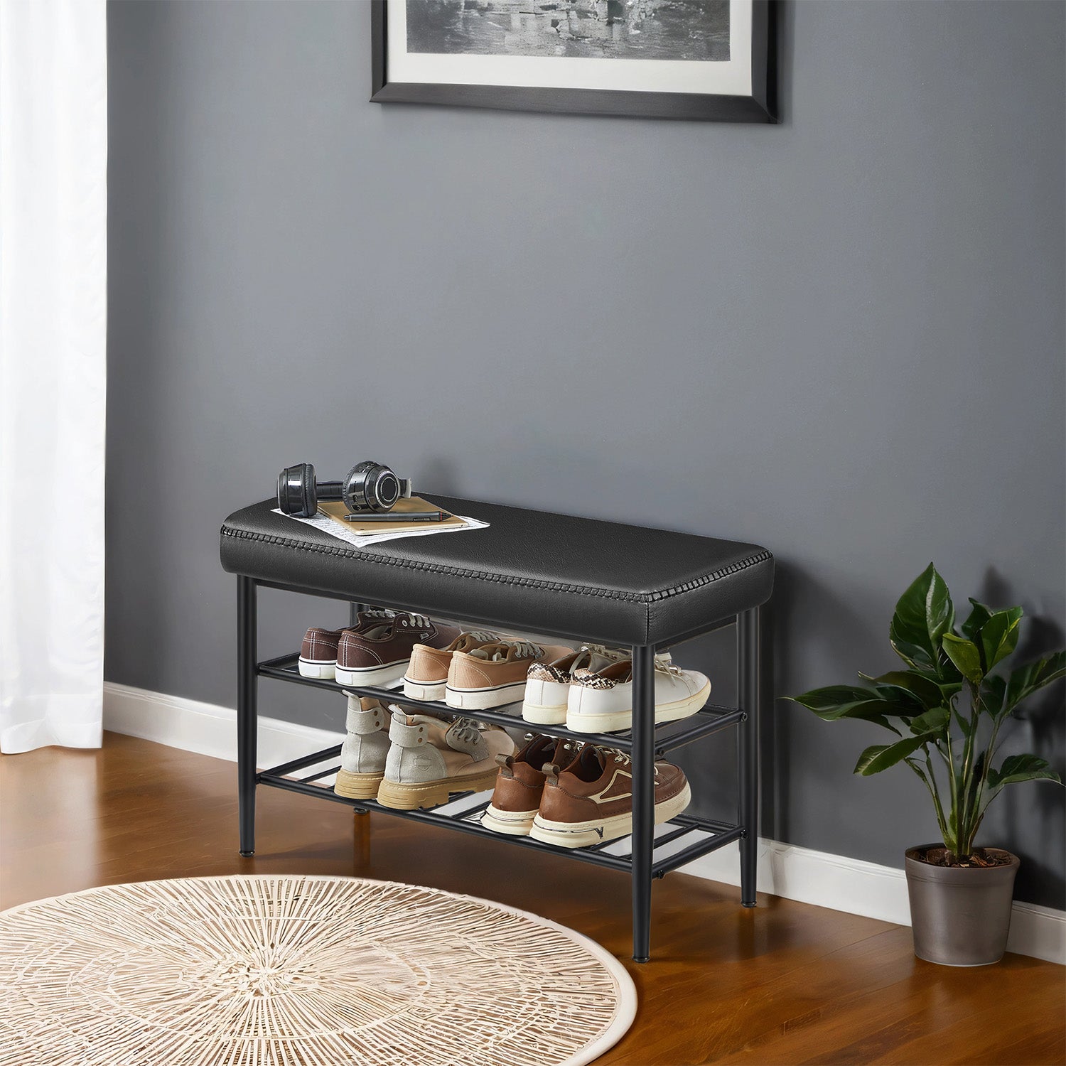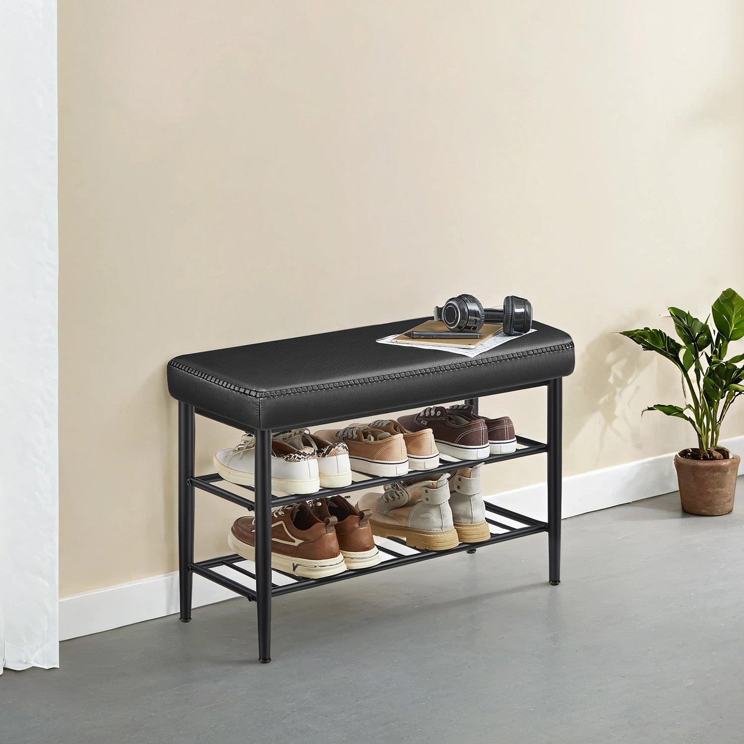 Storage Bench, Award-Winning Mid-Century Modern Shoe Rack, 300lb Capacity, Synthetic Leather Upholstered Entryway Bench with 3 Tiers, Easy Clean,Caramel Brown