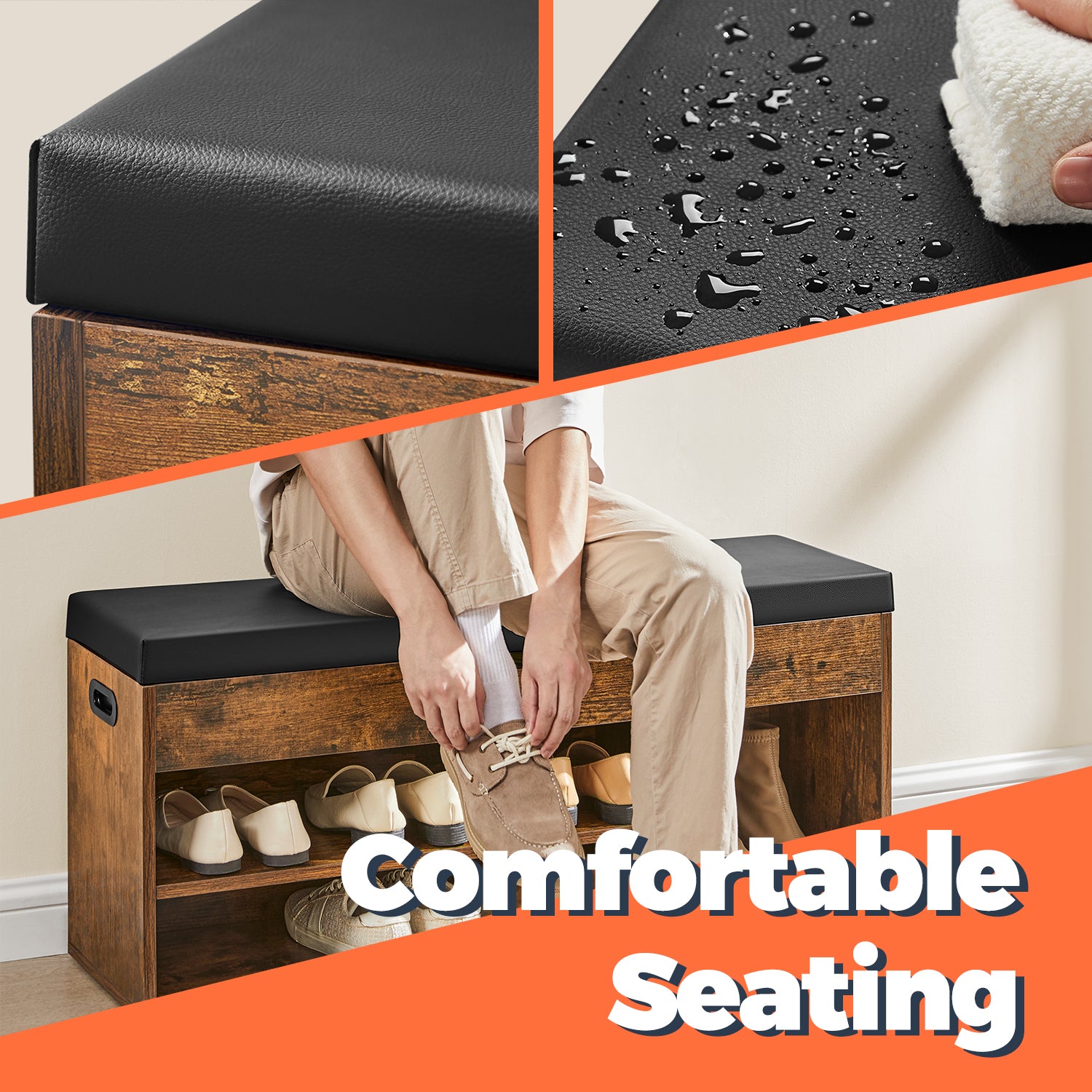 Storage Bench with Hidden Compartment & Cushioned Seat, 300lb Capacity Entryway Organizer,Rustic Brown and Ink Black