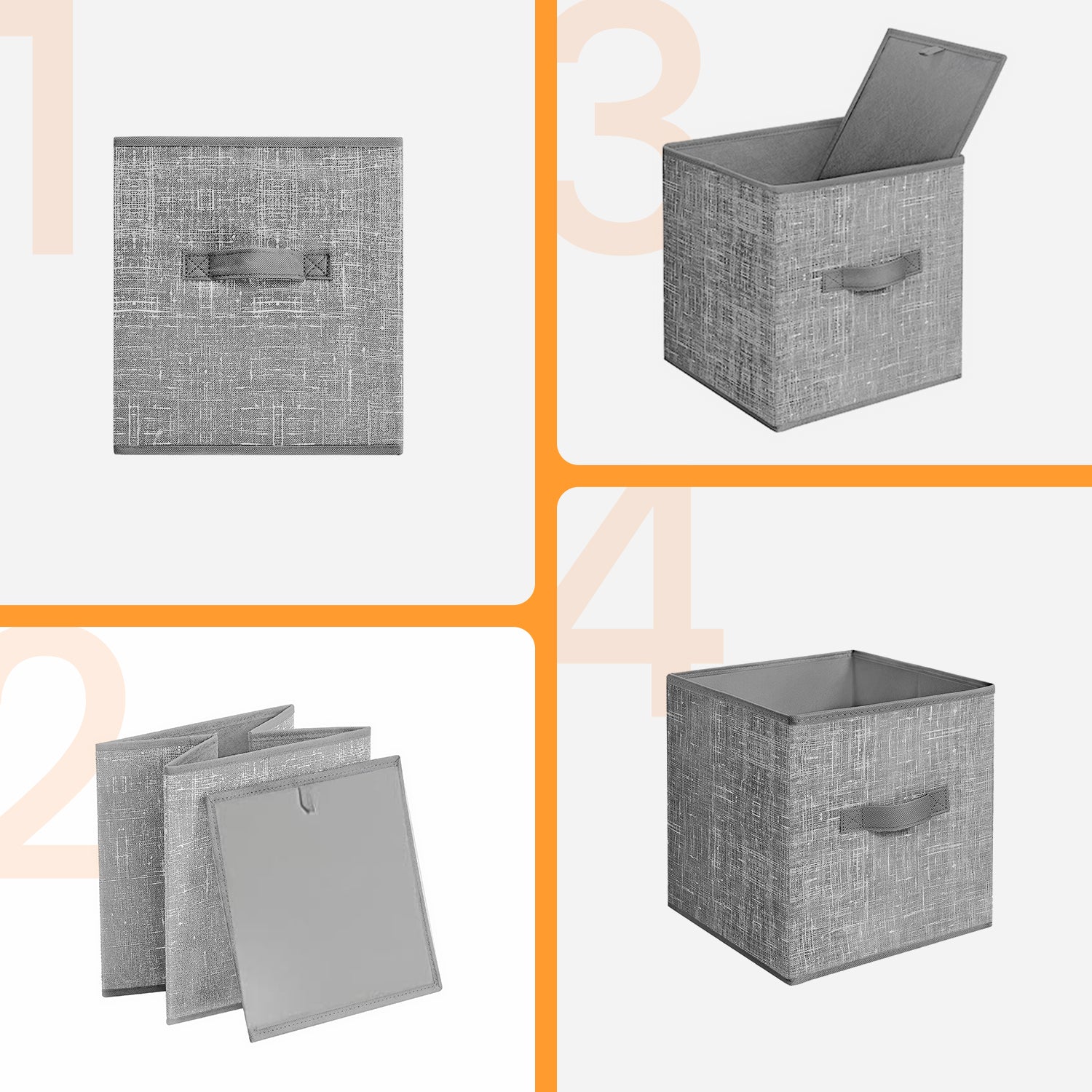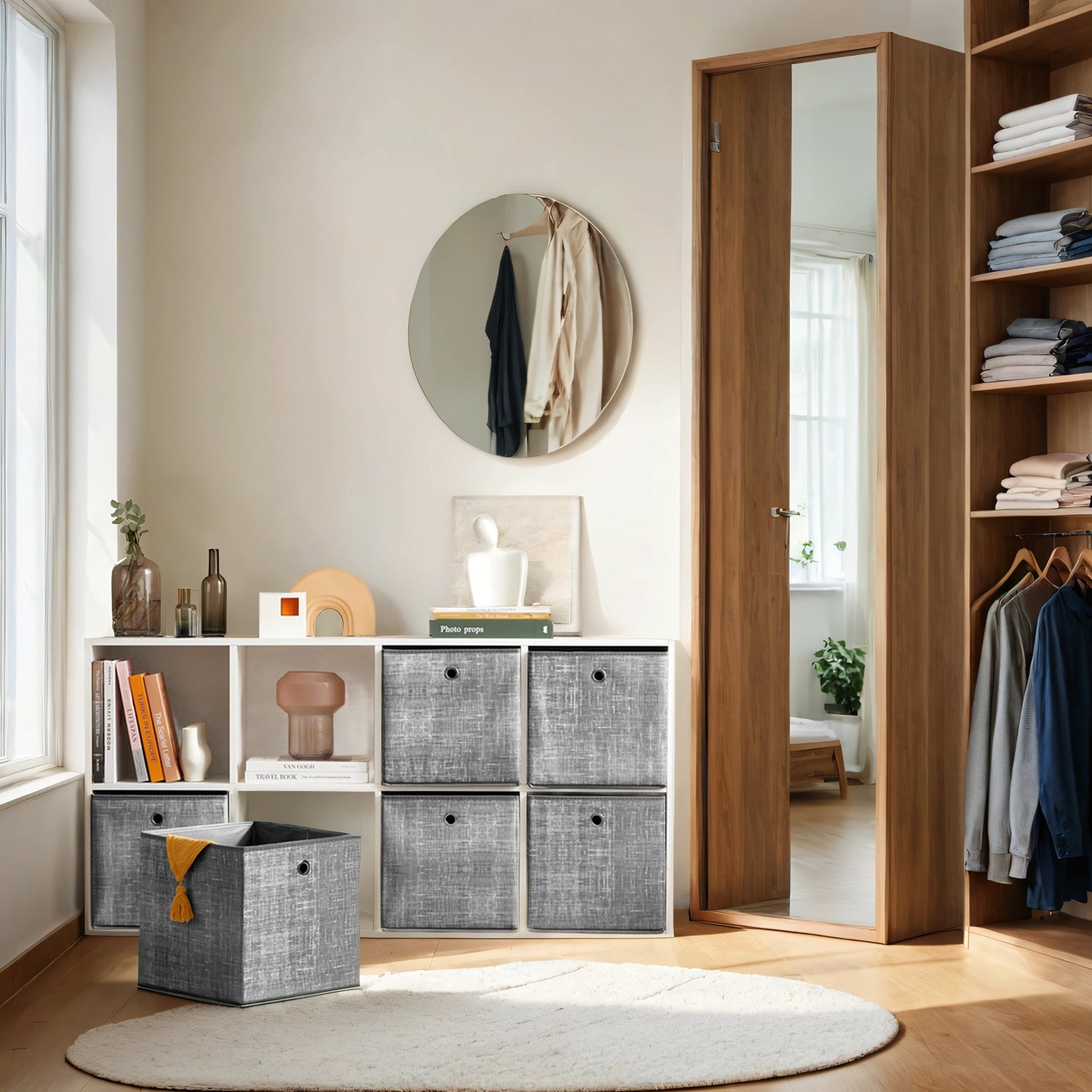 Storage Cube Organizer - 6-Pack Foldable Fabric Bins with Handles, 11" Shelving System for Clothes, Toys, Cattail Gray