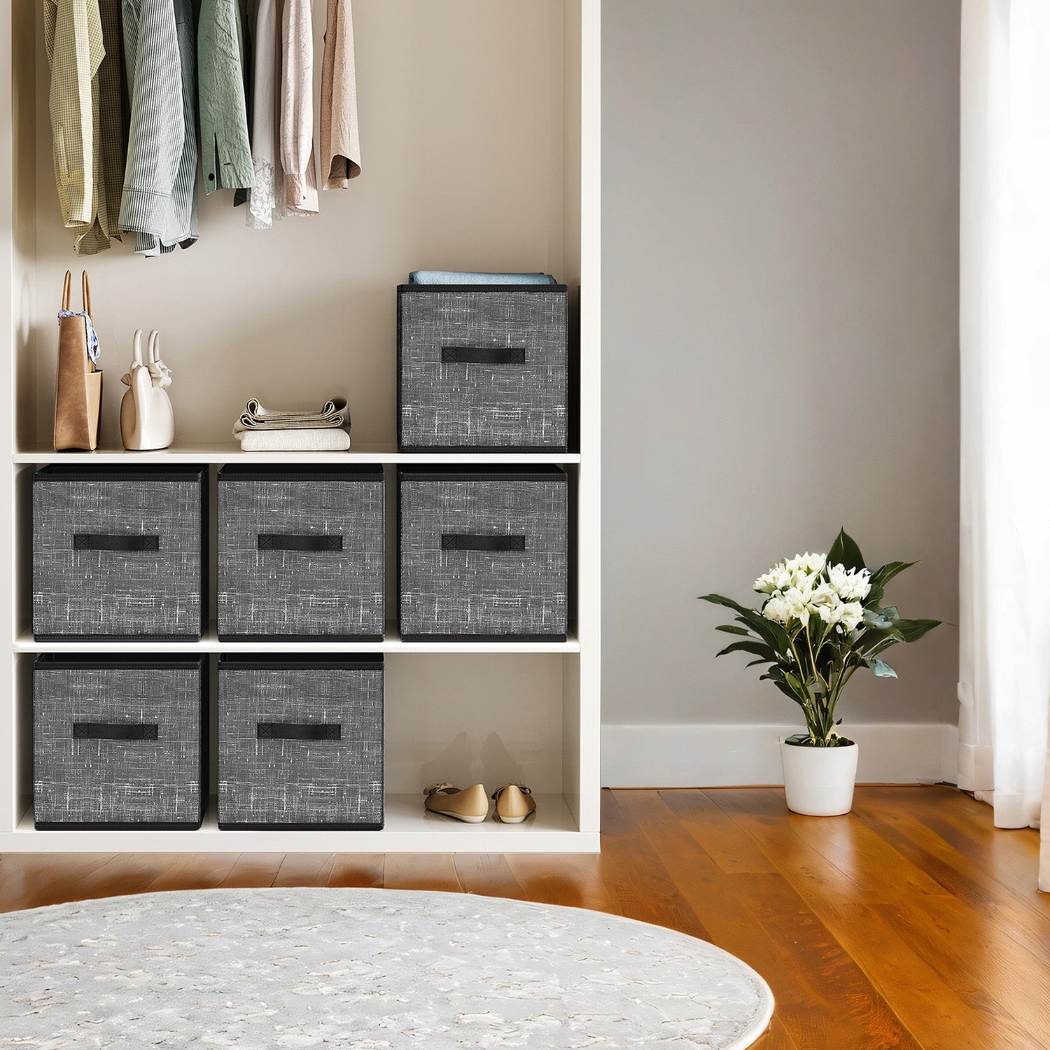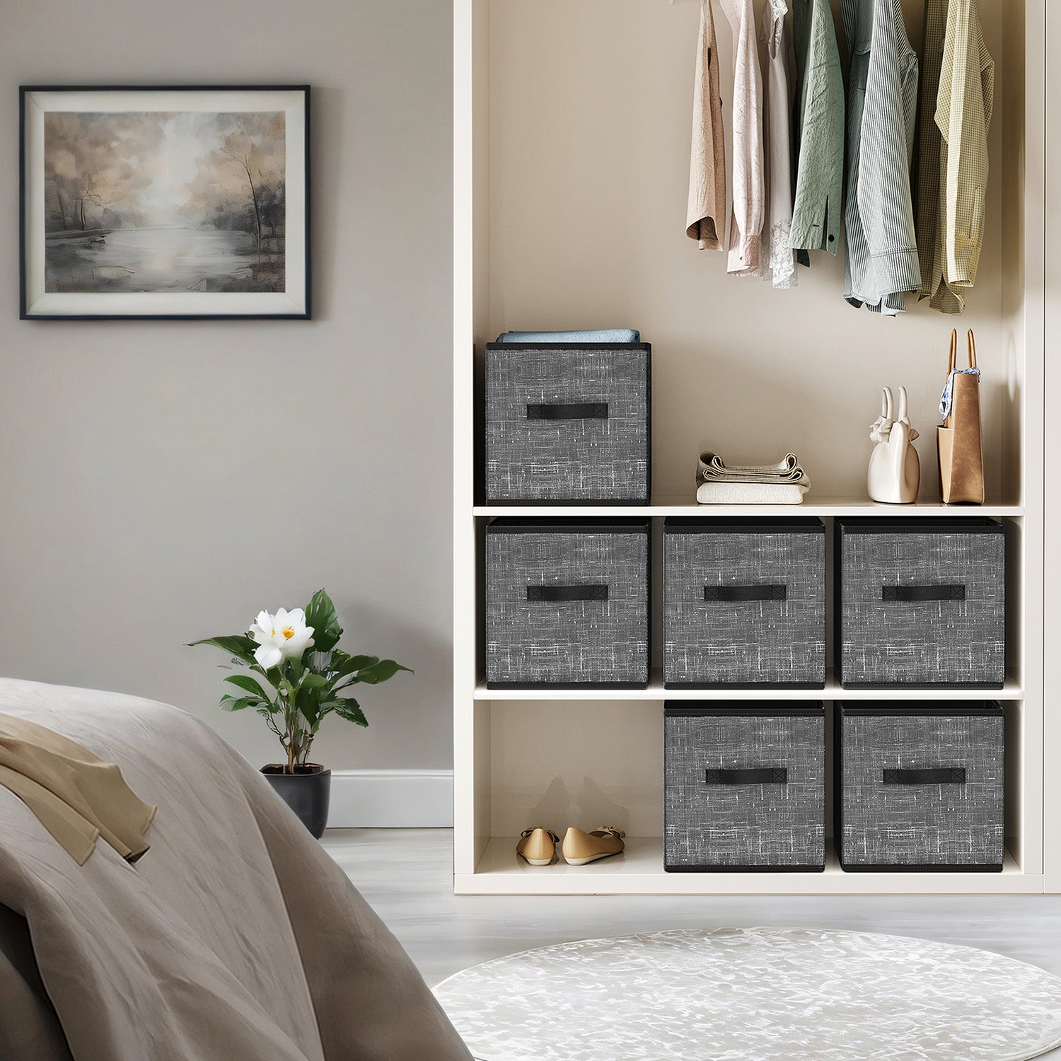 Storage Cube Organizer - 6-Pack Foldable Fabric Bins with Handles, 13" Shelving System for Clothes, Toys, IKEA Compatible, Classic Black
