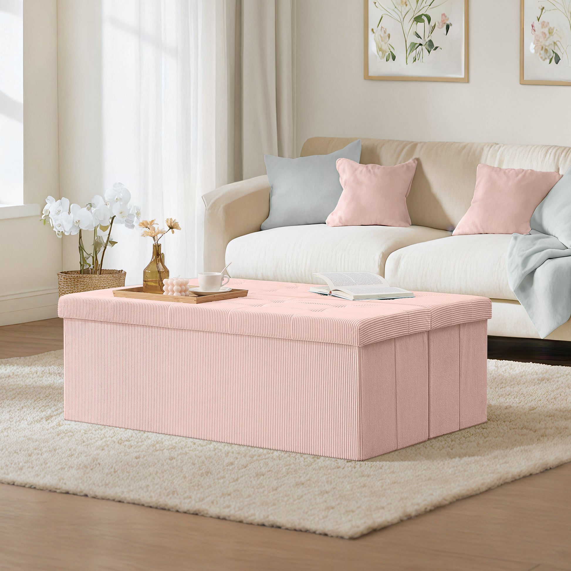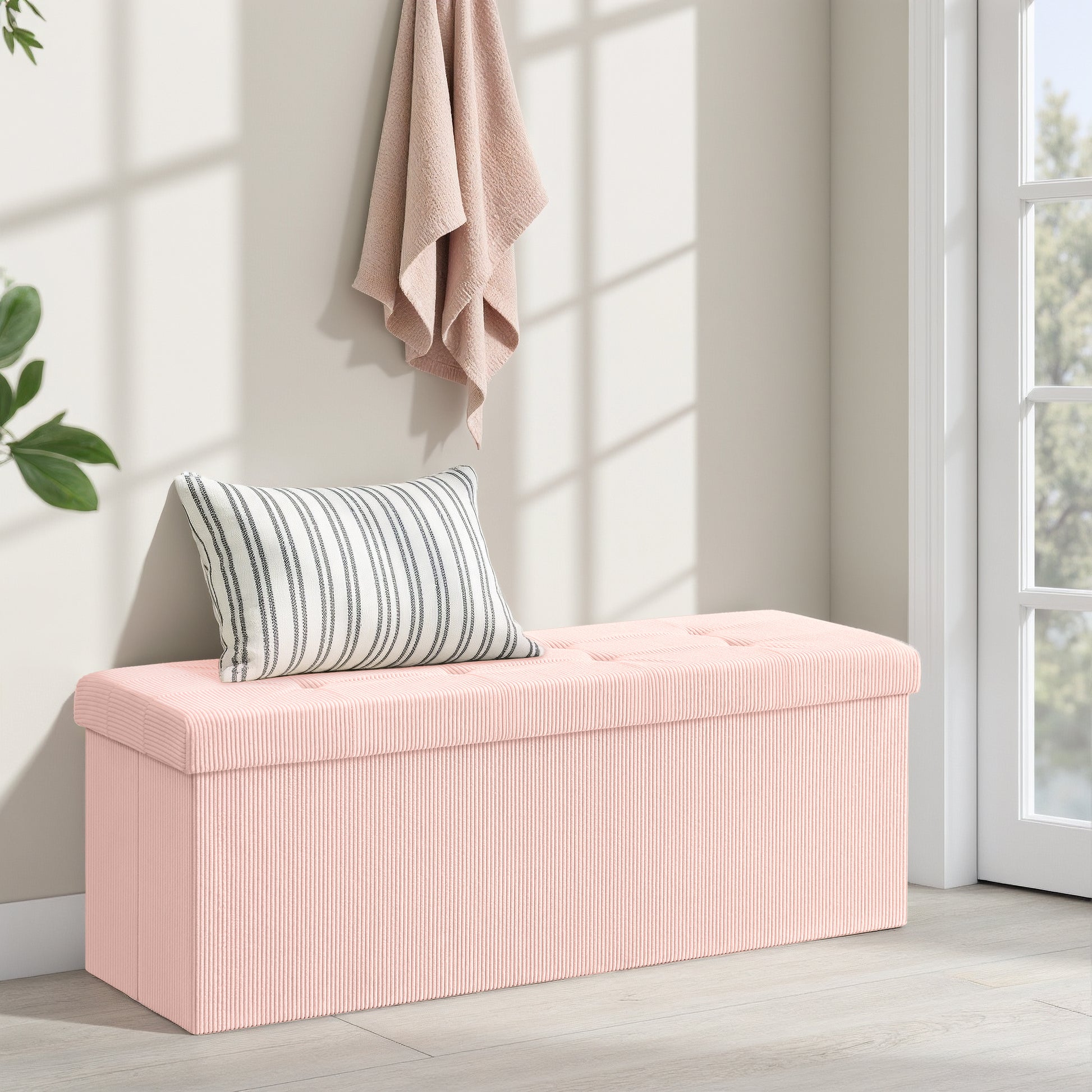 Storage Ottoman Bench, Foldable 43" Long with 35-Gallon Capacity, 660lb Weight Limit, Multi-Functional for Living Room/Bedroom, Jelly Pink