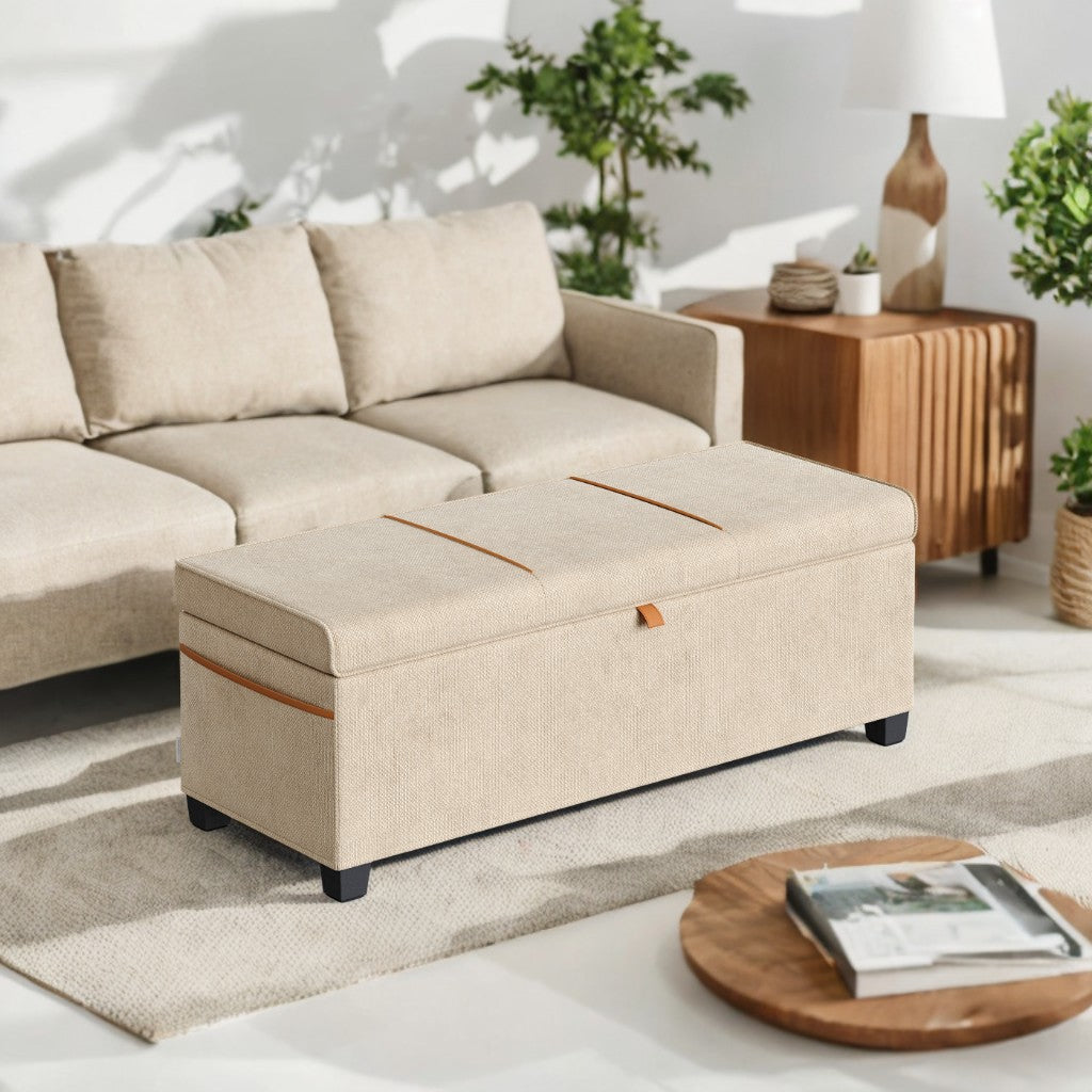 Storage Ottoman Bench with Chenille Surface, 27-Gallon Capacity, Detachable Divider & Removable Baskets, 660 lb Weight Capacity, for Bedroom/Living Room/Entryway, Cappuccino Beige