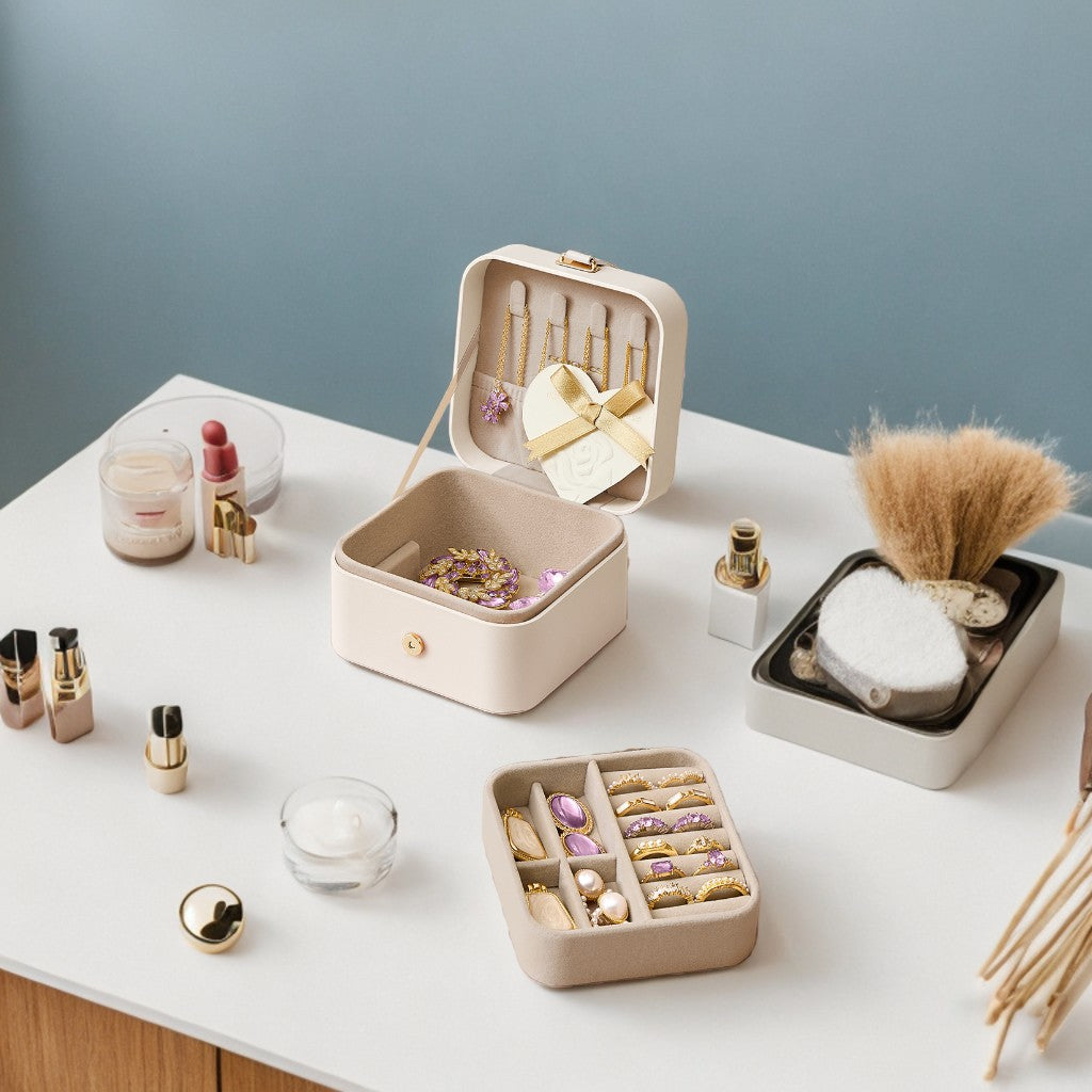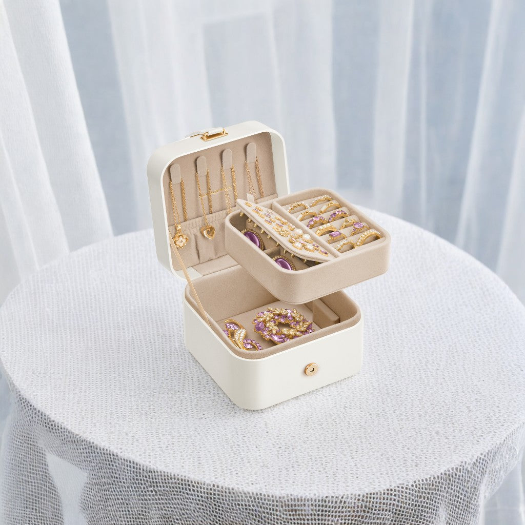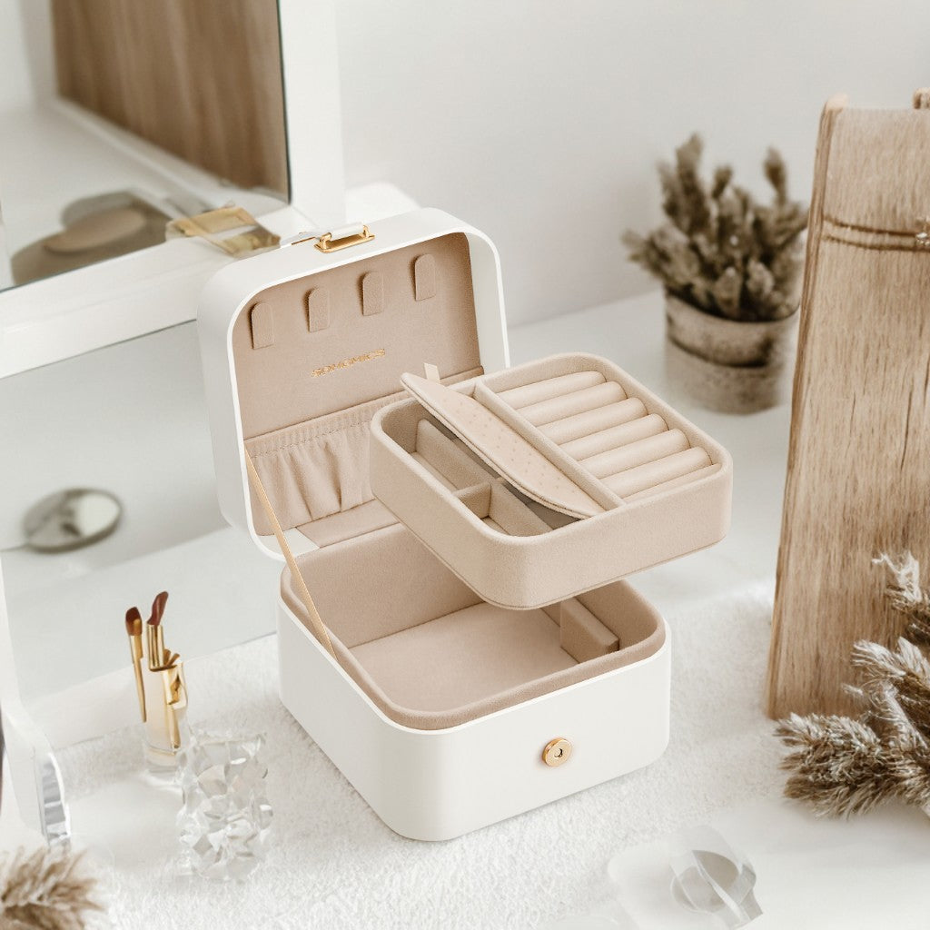 Travel Jewelry Organizer Case, 2-Layer Portable Jewelry Box with Removable Tray & Velvet Lining, for Earrings Rings Necklaces, Cloud White